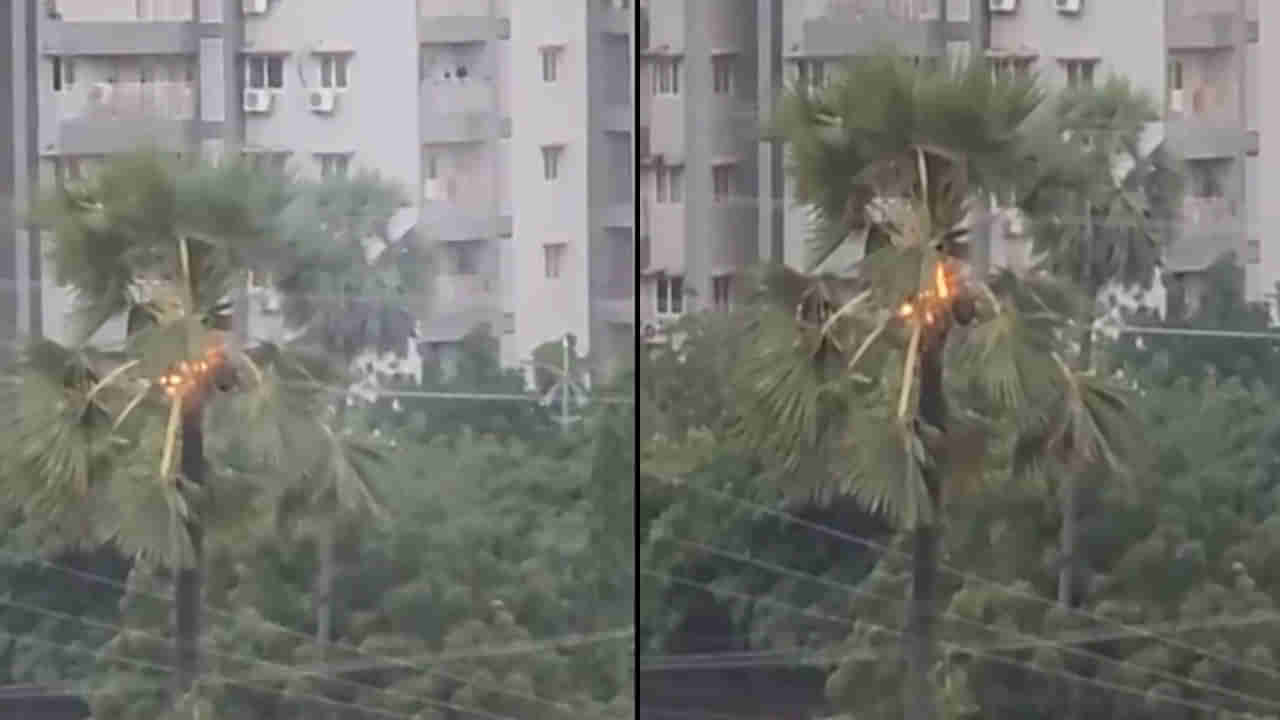 హైదరాబాద్లో కుండపోత వర్షం కురిసింది. ఈదురుగాలులు, ఉరుములు, మెరుపులతో కూడిన భారీ వర్షం పడింది. గచ్చిబౌలిలో పిడుగు పడింది. ఖాజాగూడలోని ల్యాంకోహిల్స్ సర్కిల్ HP పెట్రోల్ బంక్ ఎదురుగా భారీ శబ్దంతో పిడుగు పడింది. రోడ్డు పక్కన ఉన్న తాటిచెట్టుపై ఒక్కసారిగా భారీ శబ్దంతో పిడుగు పడడంతో జనం భయపడి పరుగులు తీశారు. ఉరుములు, మెరుపులతో కూడిన భారీ వర్షం కురవడంతో వాహనదారులు తీవ్ర ఇబ్బందులు పడ్డారు. పిడుగుపడి తాటి చెట్టుకు మంటలంటుకున్నాయి. ఆ దృశ్యాలు సోషల్ మీడియాలో వైరల్గా మారాయి. కగా, భారీ వర్షాల నేపథ్యంలో ప్రజలు ఇళ్ల నుంచి బయటకు రావొద్దని వాతావరణ శాఖ అధికారులు సూచించారు.