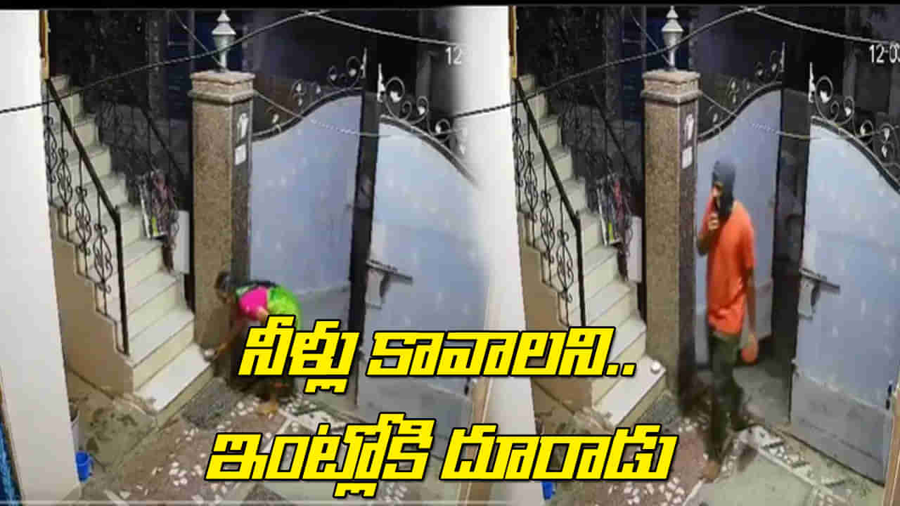 KPHB సమీపంలో నివాసం ఉండే ఓ మహిళ ఉదయాన్నే లేచి ఇంటి ముందు కల్లాపి చల్లి ముగ్గు వేస్తోంది. మరి అకస్మాత్తుగా ఆమె కనిపించిందో.. ముందుగానే రెక్కీ చేసుకున్నాడో తెలియదు కానీ.. ఒకడు మంకీ క్యాప్ పెట్టుకుని ఆ ఇంటి వద్దకు వచ్చాడు. అమ్మా.! దాహంగా ఉంది మంచినీళ్లు ఉంటే ఇస్తారా అని బాటిల్ పట్టుకుని అడిగాడు. పాపం ఆ మహిళ దూరం నుంచి ప్రయాణం చేసి వస్తున్నట్లు ఉన్నాడు.. దాహమేసినట్లుంది అని ముగ్గు గిన్నె ఇంట్లో పెట్టి.. మంచినీళ్లు ఇచ్చేందుకు ఇంట్లోకి వచ్చింది. ఆమె వెంటే అనుసరించిన దుండగుడు.. గేటు లోపలికి వచ్చి.. గుమ్మం వద్ద ఆగి కర్టెన్ తీసి.. లోపలికి వంగి బాటిల్ ఇస్తున్నట్లు నటించాడు. ఇంట్లో ఎవరూ కనిపించకపోయేసరికి.. లోపలికి వెళ్లి ఆమె మెడలో బంగారం లాక్కుని పరారయ్యాడు. ఈ పరిణామాన్ని అస్సలు ఊహించని ఆ మహిళ కంగుతింది. అతని వెనక ఆమె కూడా పరుగులు తీసింది. ఆ ఆగంతకుడు.. వెళ్తూ గేటు మూసేయ్యడంతో.. ఆమె బయటకు వెళ్లేలోపే వాడు కనిపించకుండా పరారయ్యాడు. ఈ దొంగ వ్యవహారం అంతా ఆ ఇంటి వద్ద సీసీ కెమెరాలో రికార్డయింది.