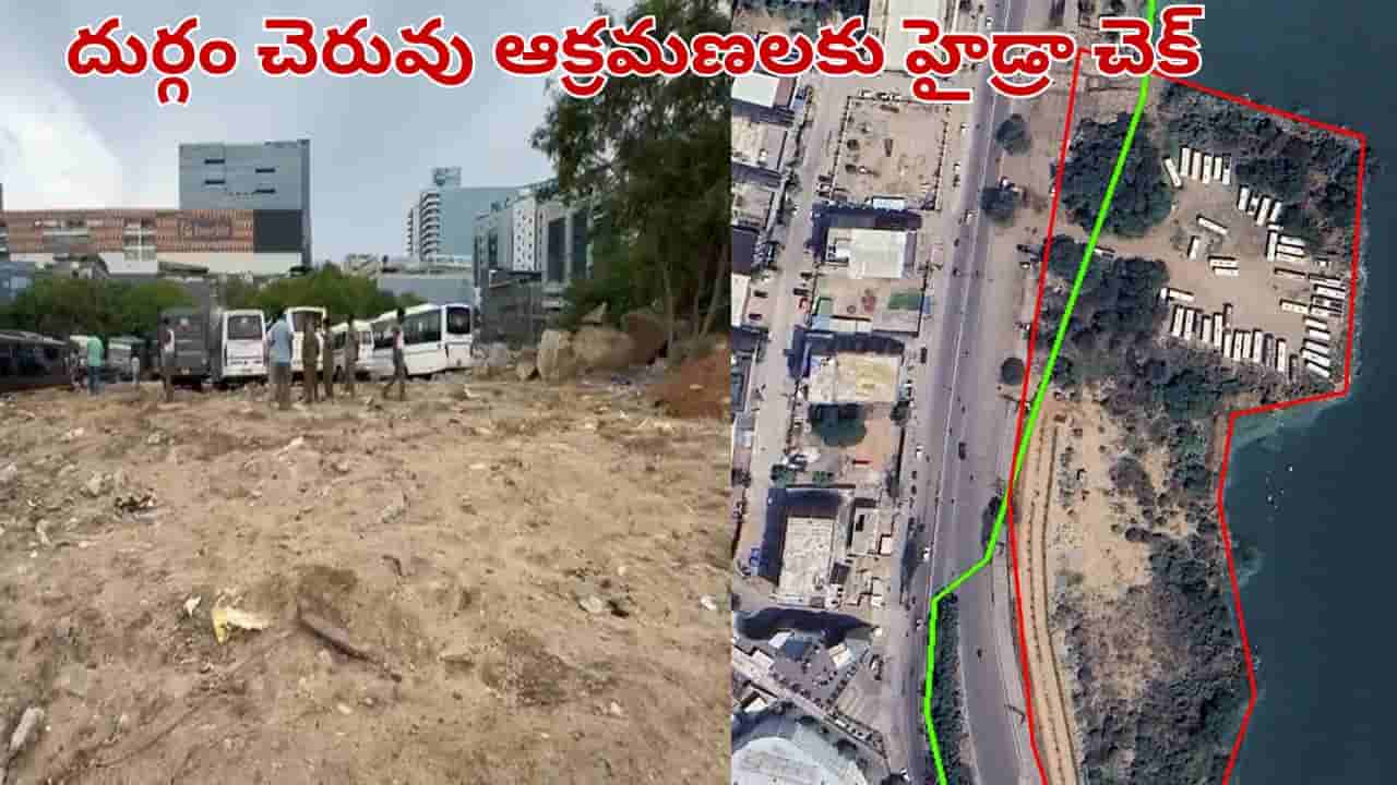 చుట్టూ ఎత్తైన కొండల మధ్య సీక్రేట్ లేక్గా పేరుగాంచిన దుర్గంచెరువును కబ్జాల చెర నుంచి హైడ్రా విడిపిస్తోంది. మాదాపూర్లోని ఇనార్బిట్ మాల్ వైపు దుర్గం చెరువులో దాదాపు 5 ఎకరాల మేర ఉన్న కబ్జాలను హైడ్రా తొలగించింది. వాహనాల పార్కింగ్ కోసం వినియోగించి ప్రతి నెలా రూ. 50 లక్షల వరకూ అద్దెలు వసూలు చేస్తున్న దందాకు హైడ్రా చెక్ పెట్టింది. అక్కడి వాహనాలను ఖాళీ చేయించి ప్రస్తుతానికి ఫెన్సింగ్ వేసింది. తర్వాత మట్టిని తొలగించేందుకు హైడ్రా చర్యలు తీసుకుంటోంది. అక్కడ బాహాటంగా జరిగిన కబ్జాలపై ప్రజావాణిలో వచ్చిన ఫిర్యాదు మేరకు హైడ్రా కమిషనర్ ఏవీ రంగనాథ్ స్పందించారు. క్షేత్రస్థాయిలో సంబంధిత శాఖల అధికారులతో విచారణ చేయమని ఆదేశించారు. ఈ మేరకు పరిశీలించిన హైడ్రా అధికారులు.. కబ్జాలను నిర్ధారించుకున్నారు. హైడ్రా కమిషనర్ ఆదేశాల మేరకు మంగళవారం 5 ఎకరాల మేర ఉన్న ఆక్రమణలను హైడ్రా అధికారులు తొలగించారు.