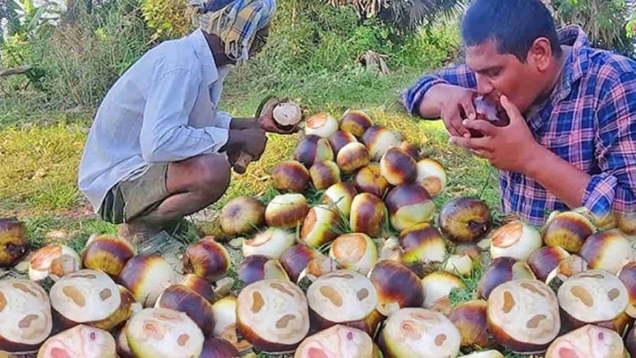 అసలే మండే ఎండాకాలం.. ఇంట్లో నుంచి బయటికి వెళ్తే ఎండ దెబ్బతో బాడీ డిహైడ్రేషన్ గురవుతుంటి. అలాంటి సమయాల్లో తాటి ముంజలు తింటే మస్త్ రిలీఫ్ ఉంటుందంటున్నారు సిద్ధిపేట జిల్లా వాసులు. హుస్నాబాద్ మండలంలోని పందిళ్ళ, పొట్లపల్లి గ్రామాల్లో భారీగా తాటి వనాలు ఉన్నాయి. మండే వేసవిలో సూర్యుని భగభగను తట్టుకునేందుకు తాటి ముంజలతో చెక్ పెడుతున్నారు ఇక్కడి స్థానికులు. చిన్నా, పెద్ద తేడా లేకుండా తాటి వనాల్లోకి వెళ్లి తాటి ముంజలను లొట్టలేసుకుంటూ తింటున్నారు. సహజ సిద్ధంగా ఈ ఎండాకాలంలో మాత్రమే దొరికే తాటి ముంజలకు భలే డిమాండ్ ఏర్పడింది. ఈ తాటి ముంజల్లో క్యాలరీలు ఎక్కువ మొత్తంలో ఉంటాయని శరీరానికి కావలసిన శక్తిని అందిస్తాయని, బాడిలో ఉన్న హీట్ను బాగా తగ్గిస్తుంది అంటున్నారు స్థానికులు. 100 రూపాయలకు డజన్ తాటి ముంజలను అమ్ముతూ జీవనోపాధిని కొనసాగిస్తున్నారు ఇక్కడి గీత కార్మికులు.