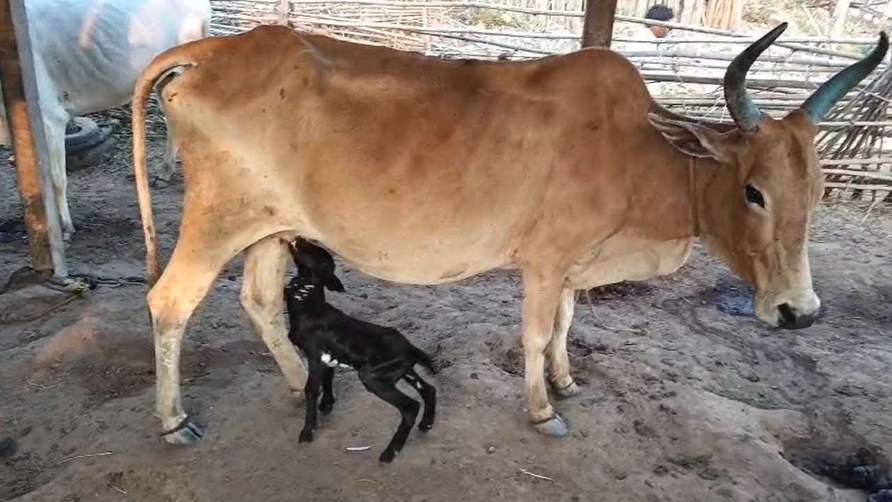 ఆకలితో అలమటించిన మేక పిల్ల.. పాలు ఇస్తూ.. అమ్మతనం పంచిన ఇటిక్యాల పాడి ఆవు!