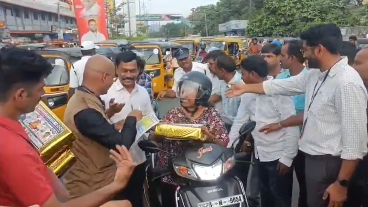 Watch Video: హెల్మెట్ వాడే వాహనదారులకు కలెక్టర్ సైర్ఫ్రైజ్.. రోడ్డుపై వాహనాలు ఆపిమరీ..