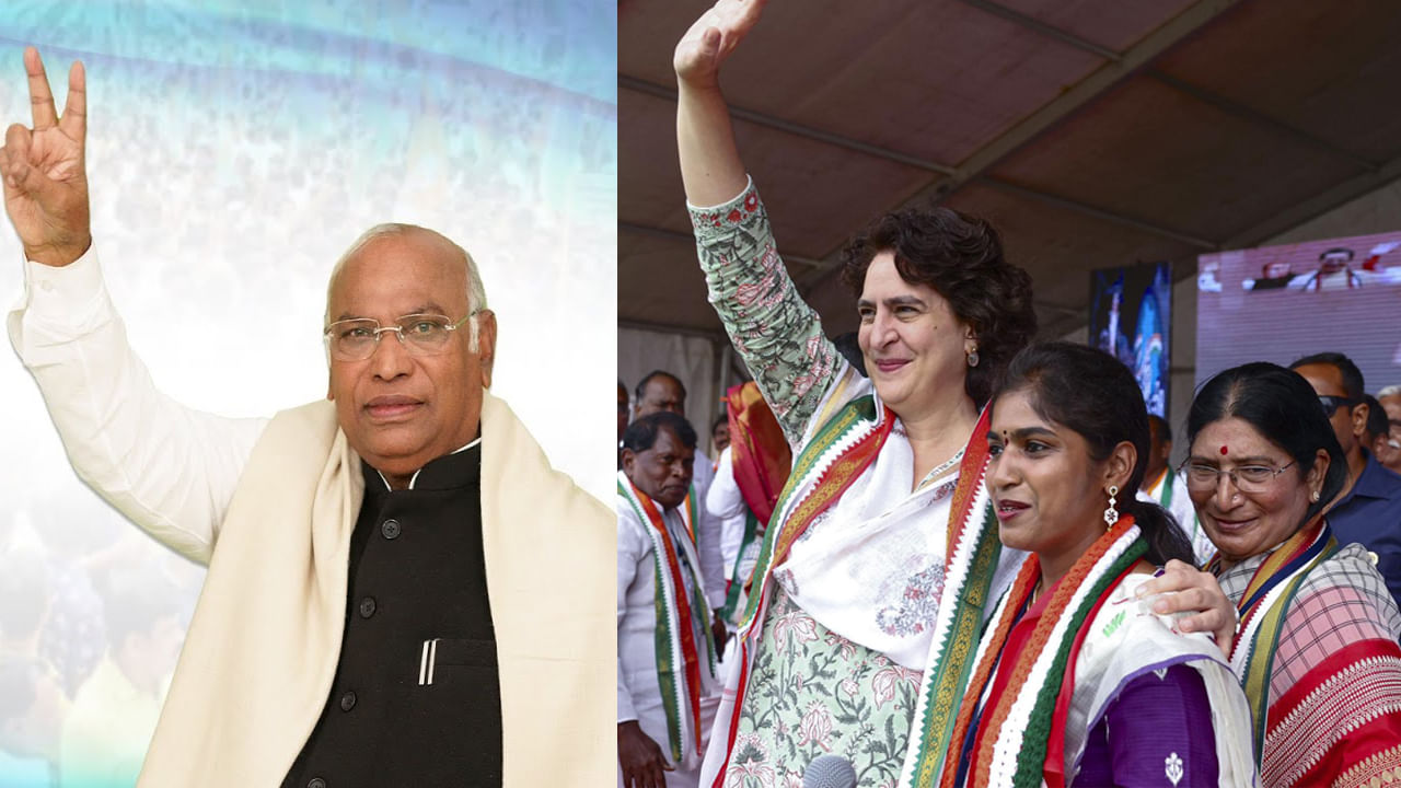 తెలంగాణలో కాంగ్రెస్ పార్టీ అధికారంలోకి రావడం ఖాయమని జోస్యం చెప్పారు ఏఐసీసీ అధ్యక్షుడు మల్లికార్జున ఖర్గే. తెలంగాణ ప్రజల ఆకాంక్షలను కాంగ్రెస్ మాత్రమే నెరవేర్చగలదన్నారు ఏఐసీసీ ప్రధాన కార్యదర్శి ప్రియాంక. తెలంగాణ శాసనసభ ఎన్నికల ప్రచారంలో భాగంగా ఏఐసీసీ అధ్యక్షుడు మల్లికార్జున ఖర్గే ఎల్బీ నగర్లో నిర్వహించిన కార్నర్ మీటింగ్లో ప్రసంగించారు. రాష్ట్రాల శాసనసభ ఎన్నికల్లో కాంగ్రెస్ విజయఢంకా మోగించబోతుందన్నారాయన. ఇక ఏఐసీసీ ప్రధాన కార్యదర్శి ప్రియాంక గాంధీ జనగామ జిల్లా పాలకుర్తిలో నిర్వహించిన బహిరంగ సభలో పాల్గొని ప్రసంగించారు. తెలంగాణ రాష్ట్రం ప్రజల త్యాగాల వల్ల ఏర్పడిందని, పోరాడి తెచ్చుకున్న తెలంగాణలో ప్రజల ఆకాంక్షలు నెరవేరలేదన్నారు. అన్ని వర్గాలకు అన్యాయం చేసిన కేసీఆర్ ప్రభుత్వానికి రోజులు దగ్గరపడ్డాయన్నారు ప్రియాంక.