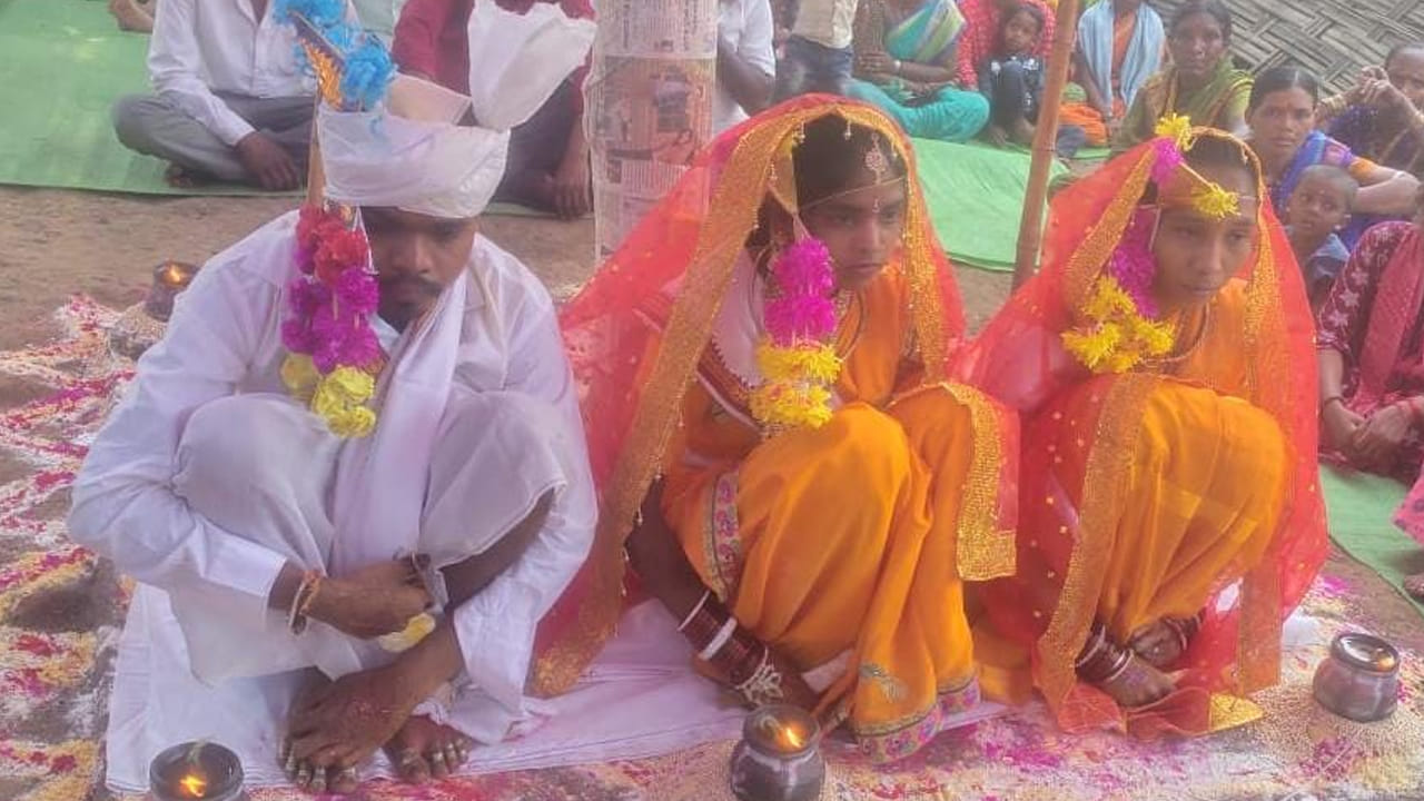 ఒకే పెళ్లి మండపంలో ఒకేసారి ఇద్దరు అమ్మాయిల మెడలో తాళి కట్టి వార్తల్లోకెక్కాడు ఓ యువకుడు. అంతేకాదు, శుభలేఖలోనూ ఆ ఇద్దరు యువతులను పెళ్లి చేసుకుంటున్నట్లు ఒకే కార్డ్ పై ముద్రించి బందువుల భారీగా ఆహ్వానించాడు. వేయి మంది అతిథుల సాక్షిగా ఆ ఇద్దరి యువతుల మెడలో మూడు ముళ్లు.. స్వారీ ఆరు ముళ్లేసి ఇద్దరు భార్యల ముద్దుల మొగుడిగా మారాడు. ఈ విచిత్ర ఘటన కొమురంభీం ఆసిపాబాద్ జిల్లా లింగపూర్ మండలం గుమ్నూర్లో ఈ పెళ్లి తంతు జరిగింది. ఆ నోట ఈ నోట సోషల్ మీడియాలోకి ఎక్కడంతో ఇప్పుడు హాట్ టాపిక్ గా మారింది ఈ ముగ్గురి జంట పెళ్లి.