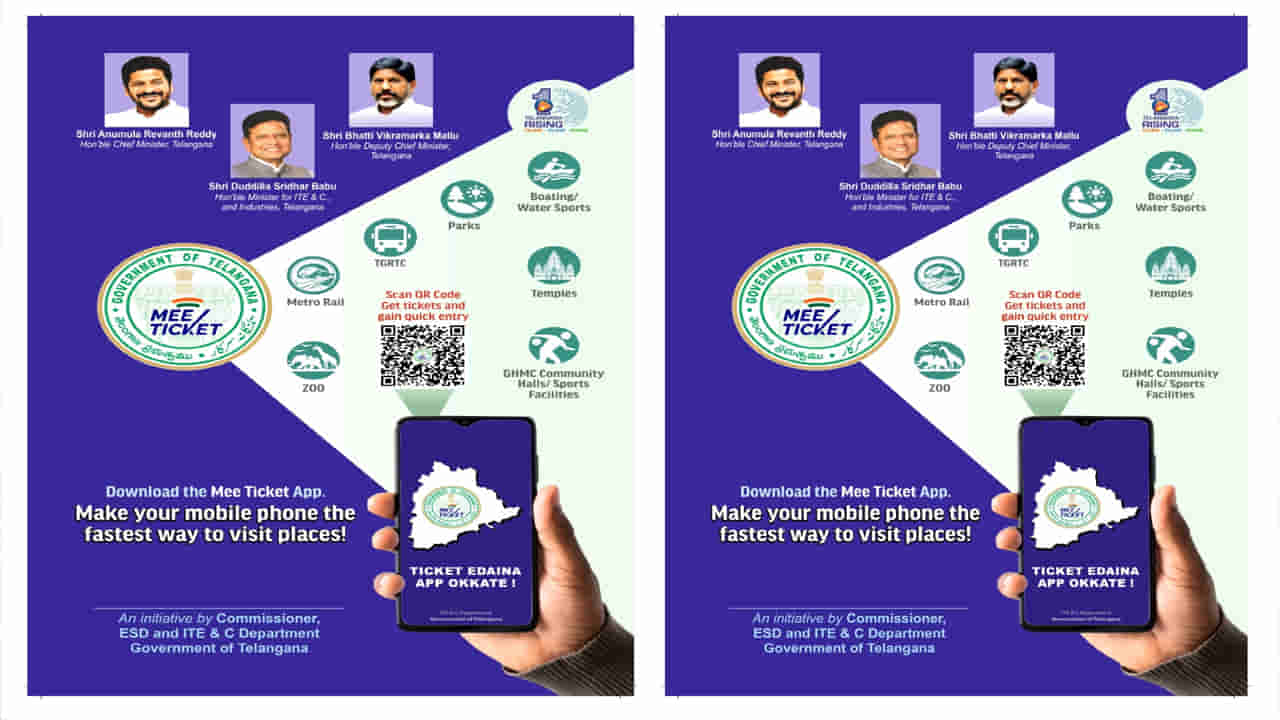 వేసవి ఎండలో ఫ్యామిలీతో వీకెండ్ ప్లాన్ చేస్తున్నారా? మెట్రో ప్రయాణం, టెంపుల్ విజిట్, పార్కులు లేదా గోల్కొండ ఫోర్ట్ వంటి ప్రదేశాలకు వెళ్లాలనుకుంటే క్యూ లైన్లు భయం కాదు. తెలంగాణ ప్రభుత్వ మీ సేవ ద్వారా వచ్చిన మీ టికెట్ యాప్‌తో ఇంటి నుంచే అన్ని టికెట్లు ఒక్క క్లిక్‌లో బుక్ చేసుకోవచ్చు. మీ టికెట్ యాప్ ద్వారా ఆర్టీసీ బస్సు, మెట్రో రైల్ టికెట్ల నుంచి పార్కులు, మ్యూజియంలు, టెంపుల్స్, ఫారెస్ట్ సఫారీల వరకు అన్ని ప్రవేశ టికెట్లు ఆన్‌లైన్‌లో పొందవచ్చు.