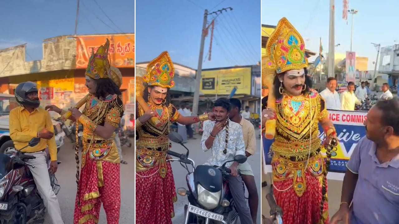 రోడ్డూ ప్రమాదాల నివారణకు పోలీసులు రకరకాల వినూత్న ప్రయత్నాలు చేస్తున్నారు. ఉచితంగా హెల్మెట్ల పంపిణీ, రీల్స్ ద్వారా అవగాహన కార్యక్రమాలు నిర్వహిస్తున్నారు. అంతేకాకుండా.. రోడ్ల ప్రమాదాల నివారణకు అన్ని ప్రాంతాల్లో విస్తృతంగా అవగాహన కల్పిస్తున్నారు. అయితే నిజామాబాద్ జిల్లాలో ఓ ఎస్ఐ మరింత వినూత్నంగా రోడ్డు ప్రమాదాల నివారణ కోసం అవగాహన కార్యక్రమం చేపట్టారు. ఈ విజువల్స్ చూసి నడి రోడ్డుపై యమధర్మ రాజు నాటక ప్రదర్శన జరుగుతుందనుకుంటే పొరపాటే.. యమ ధర్మరాజు వేషాధారణాలో ఉన్న వ్యక్తి ఒక పోలీస్ అధికారి.. నిజామాబాద్ జిల్లా ఏర్గట్ల పోలిస్ స్టేషన్ లో ఎస్ఐ గా పని చేస్తున్న పడాల రాజేశ్వర్.. రోడ్డు ప్రమాదాల నివారణ కోసం చేపట్టిన అవగాహన కార్యక్రమంలో భాగంగా ఇలా యమ ధర్మరాజు వేషంవేశారు..