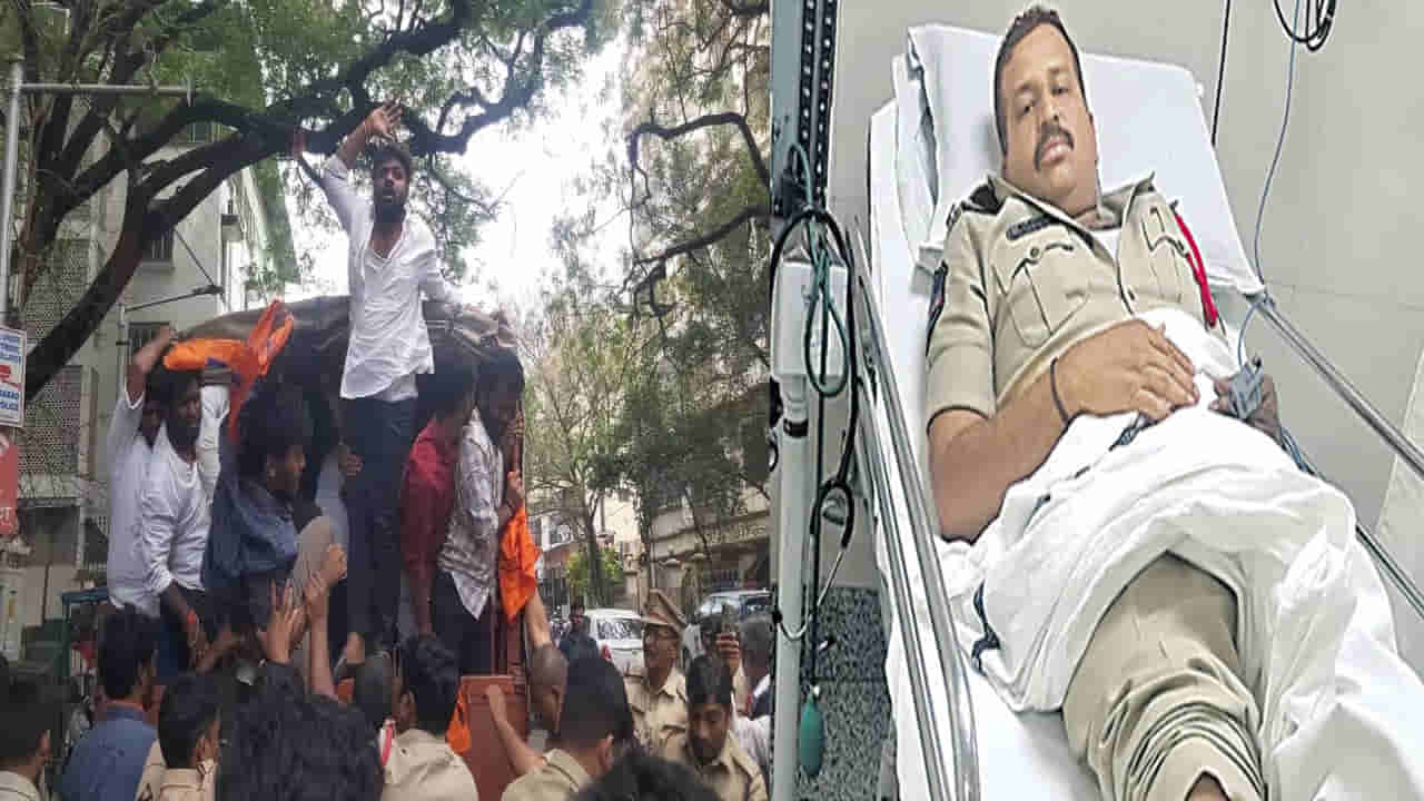 హైదరాబాద్ నడిబొడ్డున ఓ ఎస్సై పెద్ద సాహసమే చేశారు. అదుపుతప్పిన వాహనాన్ని కంట్రోల్ చేయడంతో అందులో ప్రయాణిస్తున్న 16 మంది ఏబీవీపీ కార్యకర్తలు, పోలీసులు ఊపిరి పీల్చుకున్నారు. పేపర్ లీకేజీపై సిట్టింగ్ జడ్జితో విచారణ జరిపించాలని డిమాండ్ చేస్తూ.. ఏబీవీపీ విద్యార్థులు ప్రగతి భవన్ ముట్టడికి యత్నించారు. రంగంలోకి దిగిన పోలీసులు విద్యార్థులను అరెస్టు చేసి డీసీఎం వ్యాన్లో ఎక్కించారు. పోలీస్ స్టేషన్ కు తరలిస్తున్నారు. ఈ వాహనానికి కాపలాగా బంజారాహిల్స్కు చెందిన ఎస్సై కరుణాకర్రెడ్డి, పోలీసు సిబ్బంది వ్యానులో కూర్చున్నారు.