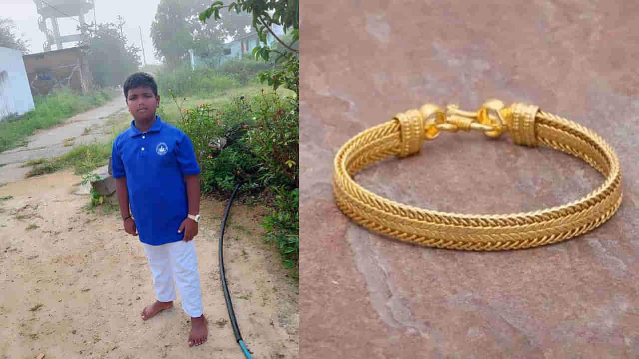 బంగారం ధరలు బగ్గుమంటున్న ఈ రోజుల్లో అంతటి విలువైన వస్తువు దొరికితే ఎవరైనా పండగ చేసుకుంటారు. కానీ మెదక్ జిల్లాకు చెందిన ఓ విద్యార్థి తన నిజాయితీని చాటుకున్నాడు. పోగొట్టుకున్న వ్యక్తికి రెండున్నర తులాల బంగారాన్ని తిరిగి అప్పగించి అందరి మన్ననలు పొందాడు. మెదక్ జిల్లా రామాయంపేటలోని తెలంగాణ ఆదర్శ పాఠశాల వద్ద వారం రోజుల క్రితం ఈ ఘటన జరిగింది. ఒక వ్యక్తి తన కుమారుడిని పాఠశాలలో దింపడానికి వచ్చాడు. ఈ క్రమంలో తన చేతికి ఉన్న బంగారు బ్రాస్లెట్ను పోగొట్టుకున్నాడు. ఎంత వెతికినా అది దొరకకపోవడంతో నిరాశతో వెళ్లిపోయాడు.