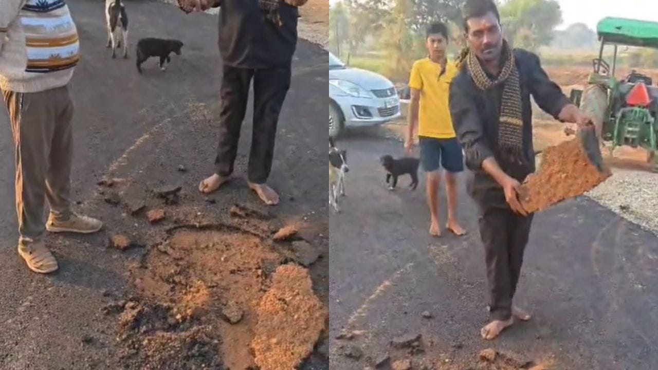 Watch: వేసిన మరుసటిరోజే.. పెచ్చులు, పెచ్చుగా ఊడోస్తున్న రోడ్డు.. ఎక్కడో తెలుసా?