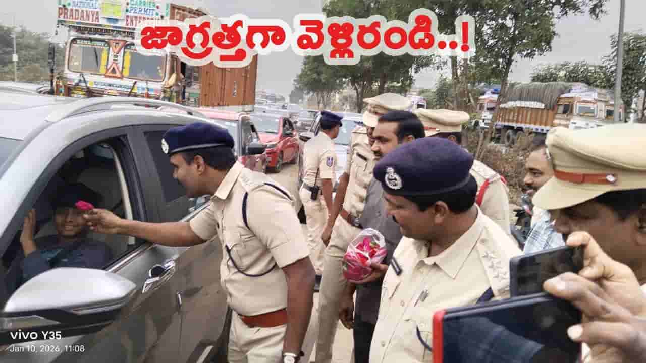 సాధారణంగా గులాబీ పువ్వులు ప్రేమికులు పరస్పరం ఇచ్చుకుంటారు. ఏదైనా కార్యక్రమానికి వచ్చే అతిథులకు కూడా పుష్పగుచ్ఛాలు ఇస్తుంటారు. కానీ సూర్యాపేట పోలీసులు మాత్రం వాహనదారులకు వినూత్నంగా రిసీవ్ చేసుకుంటున్నారు. సంక్రాంతి పండుగ వేళ హైదరాబాద్ – విజయవాడ జాతీయ రహదారిపై వాహనాలు సందడి చేస్తున్నాయి. సంక్రాంతి పండుగ కోసం హైదరాబాద్ పట్నం వాసులంతా పల్లె బాట పడుతుండడంతో ఈ హైవే వాహనాల రద్దీ ఉంది. అయితే సంక్రాంతి పండుగ వేళ ప్రయాణికుల రక్షణే ధ్యేయంగా సూర్యాపేట జిల్లా పోలీసులు వినూత్న రీతిలో అవగాహన కల్పించారు. జాతీయ రహదారిపై ప్రయాణిస్తున్న వాహనదారులను ఆపి , వారికి పువ్వులు అందించి సూర్యాపేట జిల్లా ఎస్పీ నరసింహ ప్రయాణ జాగ్రత్తలు వివరించారు.