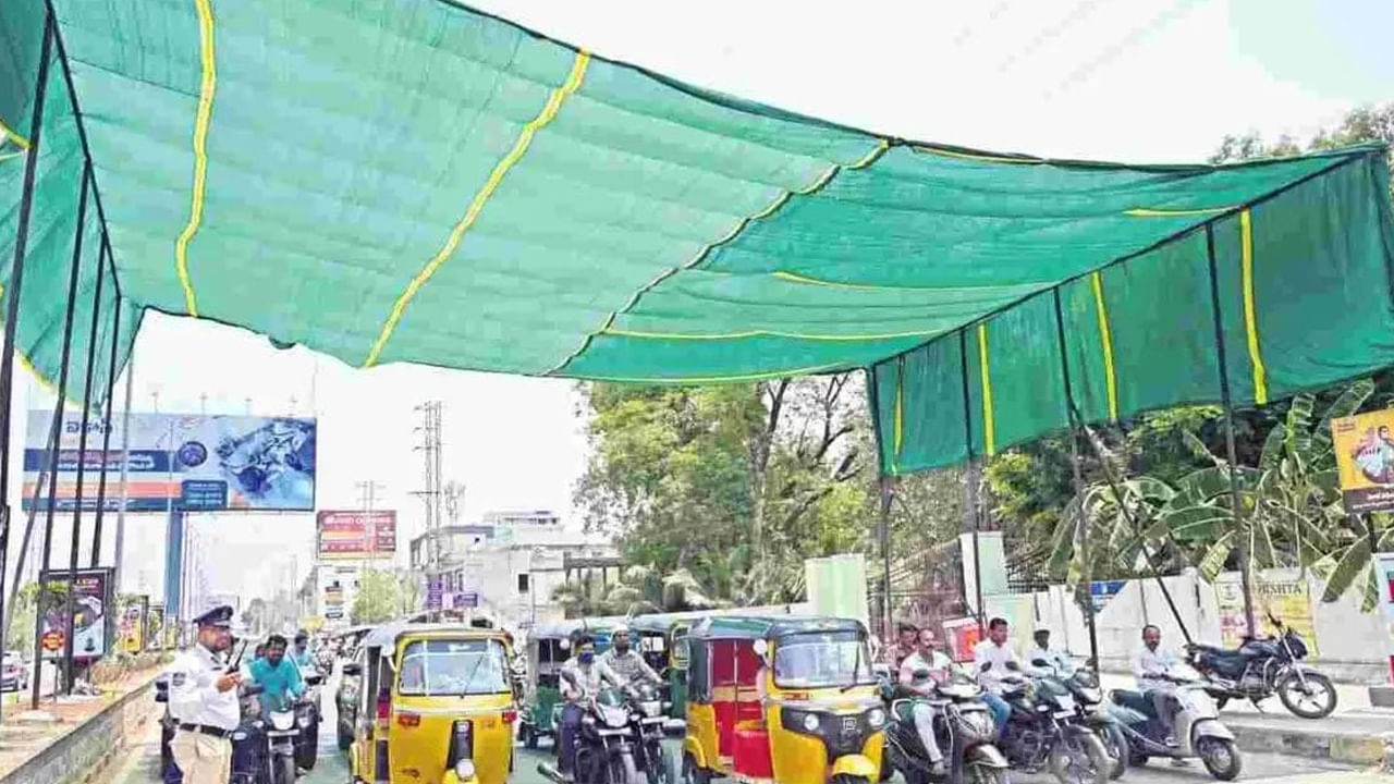 సిగ్నల్ పాయింట్స్ వద్ద చలువ పందిళ్లు.. వాహనదారులకు కాసేపు ఉపశమనం..! ఎక్కడంటే..