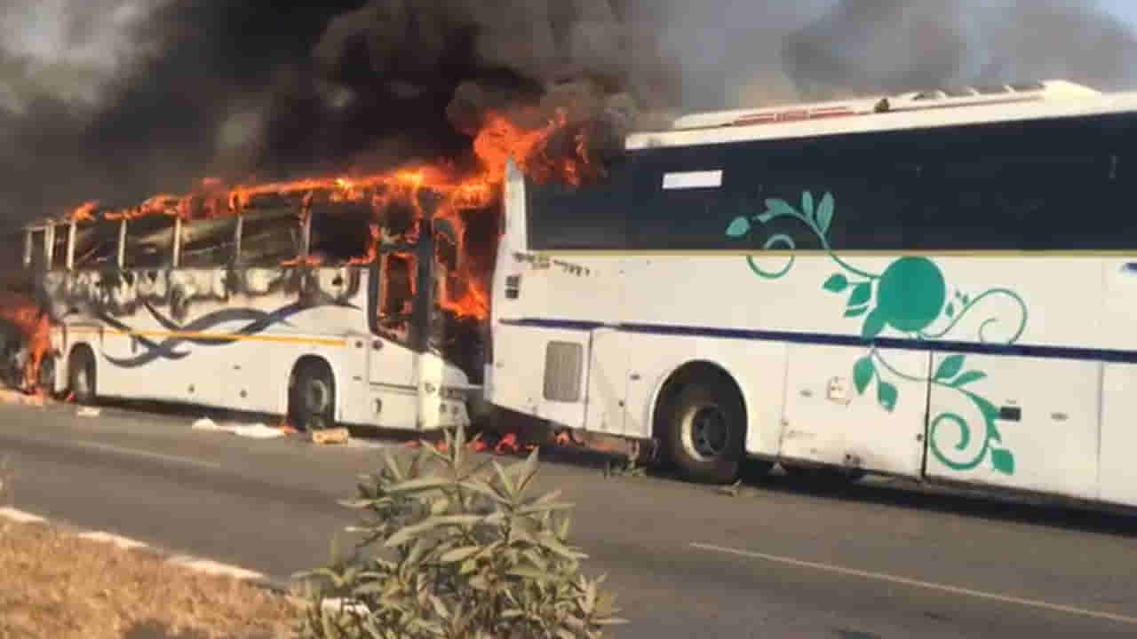 సూర్యాపేట జిల్లాలో ఘోర అగ్నిప్రమాదం జరిగింది. చివ్వెంల మండలం గుంపుల శివారులో హైదరాబాద్ – విజయవాడ నేషనల్ హైవేపై రెండు బస్సులు మంటల్లో చిక్కుకున్నాయి. ఏపీఎస్ ఆర్టీసీకి చెందిన రెండు బస్సుల్లో ప్రమాదవశాత్తు మంటలు అంటుకున్నాయి. ఈ ఘటనలో రెండు బస్సులూ పూర్తిగా అగ్నికి ఆహుతయ్యాయి. ఆదివారం వేకువజామున హైదరాబాద్ నుంచి విజయవాడ వెళ్తున్న ‘వెన్నెల’ బస్సులో సాంకేతికలోపం తలెత్తింది. బ్యాటరీలో తలెత్తిన సమస్యతో బస్సు లైట్లు పనిచేయలేదు. ప్రయాణికులను వేరే బస్సుల్లో పంపించారు.