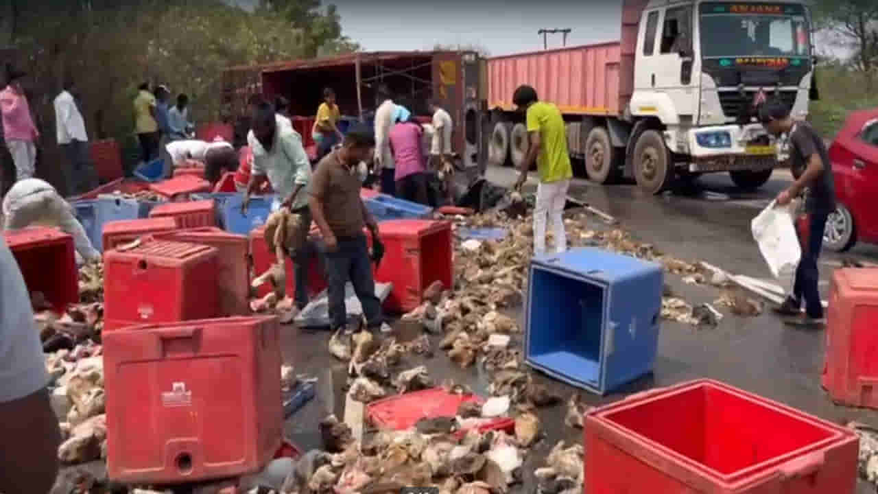 ఇక ఒక్కోసారి పొలాల్లోకి చేపలు వచ్చిన ఘటనలు విని ఉంటాం. అంతేకాకుండా వర్షం పడినప్పుడు ఆకాశం నుంచి కూడా చేపలు పడ్డాయని వార్తల్లో చూసి ఉంటాం. రూపాయికి బిర్యాణీ అంటే కిలోమీటరు పొడువున క్యూ కట్టిన జనంను మనం చూశాం. పాయా అంటే ఇష్టపడే వారికి ఇటీవల పంట పండింది. చేతిలో పెద్ద కవర్ పట్టుకుని వచ్చి, చేతికందినన్ని మేక తలకాయలు, కాళ్ల తీసుకు పోయారు. ఈ ఆసక్తికర ఘటనకు సంబంధించిన వివరాలిలా ఉన్నాయి. మెదక్ జిల్లా తూప్రాన్ మీదుగా వెళ్తున్న ఓ లారీ బోల్తా పడింది. లారీలో ఉన్న లో మేక తలకాయలు, కాళ్ల లోడ్ తో వెళ్తున్న లారీ బోల్తా పడింది. దీంతో రామాయంపేట వాసులు కాళ్ళు, తలకాయలు తీసుకెళ్లడానికి ఎగబడ్డారు. తర్వాత వాటిని తీసుకుని ఎంచక్కా ఇంటికి పోయారు.