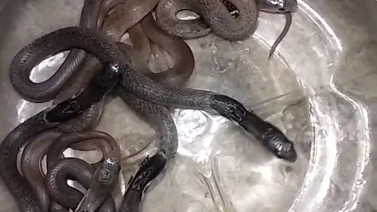 ఘాజీపూర్లోని పాండే కాపురా గ్రామంలో రాజేష్ పాండే ఇంట్లో పది నాగుపాములు కనిపించడంతో కుటుంబం తీవ్ర భయాందోళనకు గురైంది. మొదట వంటగది లో ఒక పాము కనిపించింది. పాములను పట్టుకునే వ్యక్తిని పిలిపించగా, అతను మొత్తం పది పాముల ను పట్టుకున్నాడు.