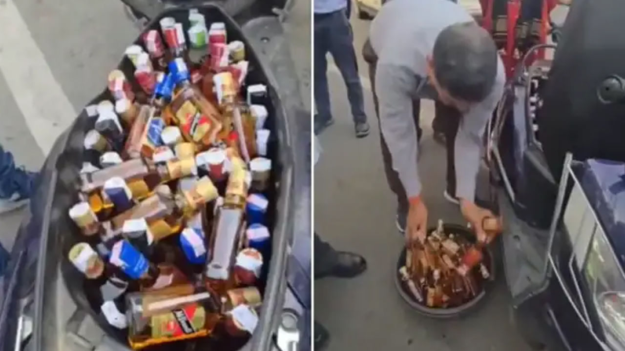 Viral Video: ఇదో సంచార మద్యం దుకాణం.. స్కూటీలో దాచిన లిక్కర్ బాటిళ్లు చూస్తే మతిపోవాల్సిందే..!