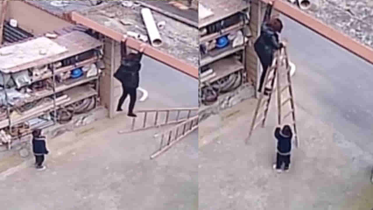 వైరల్ అవుతున్న ఈ వీడియోలో ఓ మహిళ తన కుమారిడితో కలిసి ఉండటాన్ని చూడవచ్చు. ఆమె ఓ నిచ్చెన సహాయంతో ఇంటి పైన ఏవో వస్తువులను సర్దుతోంది. అదే సమయంలో ఆకస్మాత్తుగా నిచ్చెన కింద పడిపోతుంది. దీంతో ఆమె పైనున్న ఆధారాన్ని పట్టుకుని గాల్లోనే వేలాడుతుంటుంది. వెంటనే అలర్ట్ అయిన ఆ చిన్నారిర తన తల్లిని ఆ ప్రమాదం నుంచి బయటపడేసేందుకు శాయశక్తులా ప్రయత్నిస్తాడు. తన శక్తి చాలకున్నా.. శక్తికి మించి నిచ్చెనను పైకి లేపుతాడు. తన తల్లిని ప్రమాదం నుంచి కాపాడతాడు.