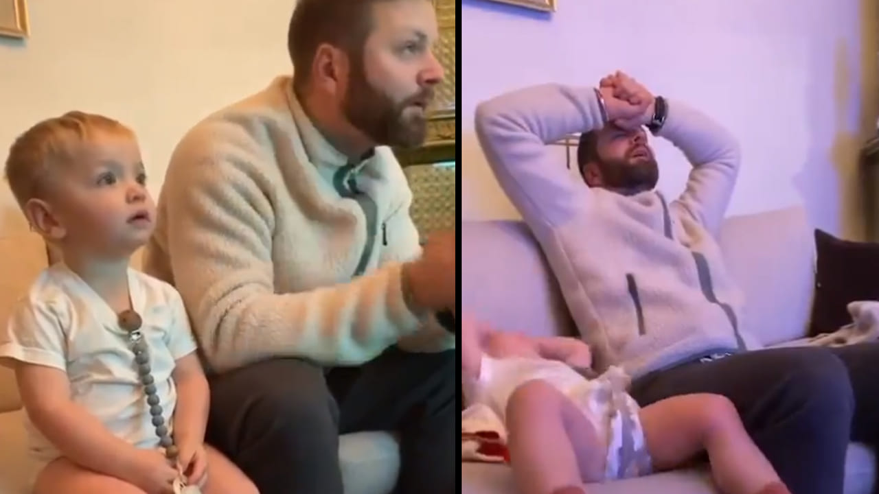ఓ చిన్నారి తన తండ్రితో కలిసి ఫుట్బాల్ మ్యాచ్ చూస్తున్నట్లు వీడియోలో చూడవచ్చు. చిన్నారి బాలుడి వయసు.. చూస్తుంటే అతనికి ఆనందానికి, దుఃఖానికి కారణం ఏంటో తెలీదు.. అయితే టీవీలో ఆనందంగా ఉన్నవాళ్ళని చూసిన తాను సంతోషించాడు. తన తండ్రి దిగులుగా ఉండడం చూసి.. తాను కూడా విచారం వ్యక్తం చేశాడు. తండ్రిలాగే కొడుకు కూడా విసుగు చెంది తన మొహం మీద చిట్టి చేతిని వేసుకుని మరీ దిగులుని వ్యక్తం చేశాడు.