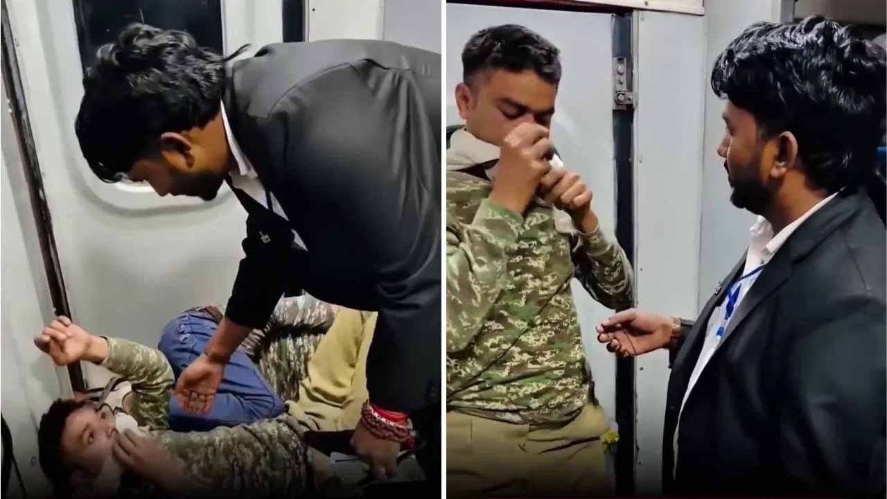 Viral Video: రైలులో టాయిలెట్ దగ్గర నేలపై నిద్రిస్తున్న భారత జవాన్.. టీటీఈ చేసిన పనికి జనం ఫిదా!