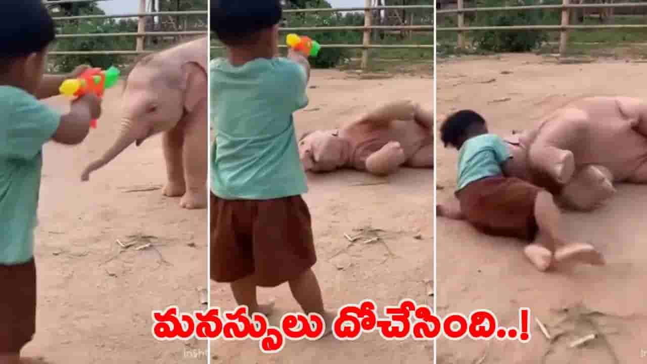 ఈ వైరల్ వీడియోలో, ఒక చిన్న పిల్లవాడు, పిల్ల ఏనుగు కలిసి ఆడుకుంటున్నారు. ఆ పిల్లవాడు వాటర్ గన్ పట్టుకుని ఉన్నాడు. సరదాగా, పిల్లవాడు వాటర్ గన్ను పిల్ల ఏనుగు వైపు గురిపెట్టాడు. అతను వాటర్ గన్ నుండి నీటిని పేల్చినప్పుడు, పిల్ల ఏనుగు ప్రతిచర్య నిజంగా అద్భుతంగా ఉంది. ఎవరో చెప్పినట్లు నటనలో జీవించింది. వీడియోలో, పిల్లవాడు ట్రిగ్గర్ నొక్కిన వెంటనే, పిల్ల ఏనుగు తడబడి నేరుగా నేలపై పడిపోయింది. ఆ తరువాత, అది నిజంగా కాల్చినట్లుగా నేలపై ఒరిగిపోయింది.