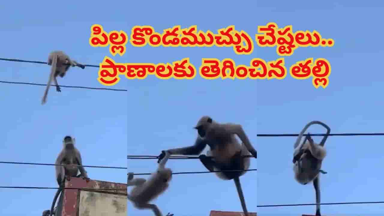 ఈ వైరల్ వీడియోలో కొండముచ్చు పిల్ల ఒకటి హైటెన్షన్ వైర్ పై చిక్కుకుంది. అక్కడ్నుంచి పక్కనే ఉన్న పైకప్పుపైకి దూకడానికి ప్రయత్నిస్తుంది. కానీ, దానికి అలా చేయడానికి ధైర్యం సరిపొదు. తల్లి కొండముచ్చు ఆ పిల్లకు సాయం చేసేందుకు ప్రయత్నిస్తుంది. అయినప్పటికీ ఆ పిల్ల కొండముచ్చు అక్కడ్నుంచి తప్పించుకోలేకపోతుంది. అప్పుడు ఇక దాని తల్లి తన బిడ్డను కాపాడేందుకు కదిలింది. ఆపద నుండి తన బిడ్డను రక్షించేందుకు నిశ్చయించుకుంది. ఎట్టకేలకు బిడ్డ ప్రాణాలను కాపాడింది తల్లి.