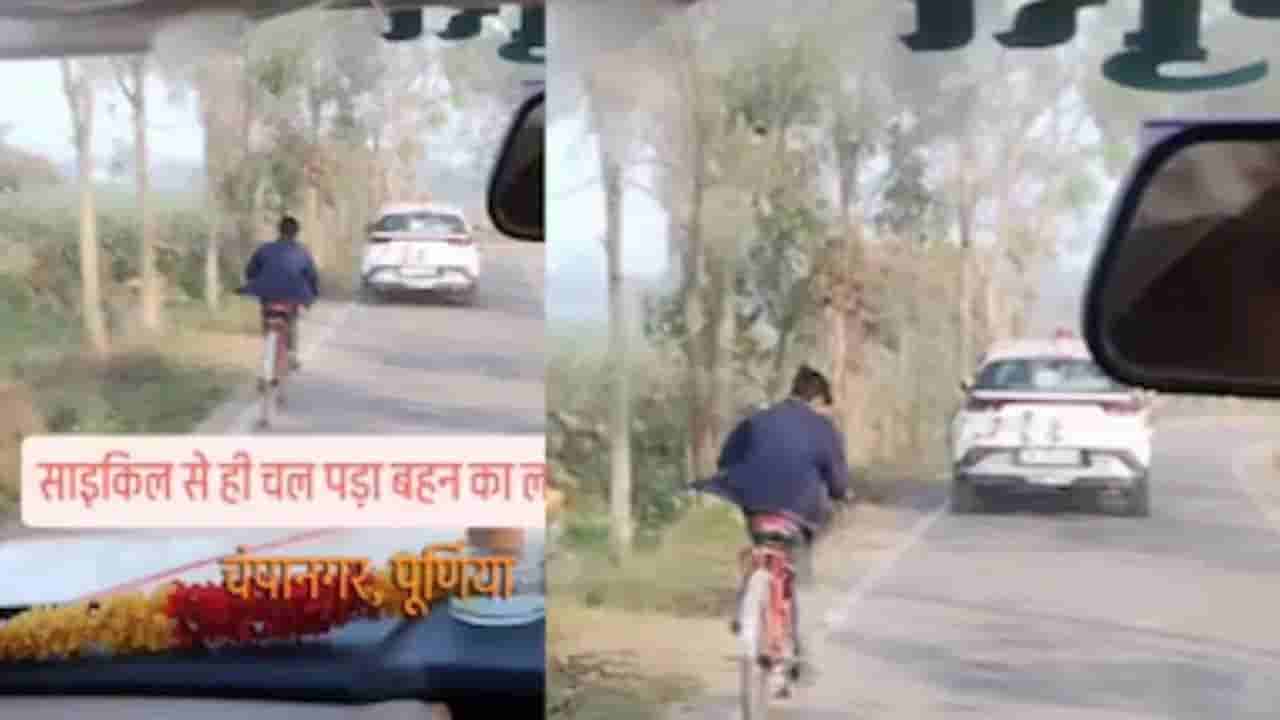 ఈ వీడియోను ఇన్స్టాగ్రామ్లో సుశాంత్_సుప్రియ అనే హ్యాండిల్ షేర్ చేశారు. ఈ వీడియో బీహార్లోని పూర్ణియా జిల్లాలోని చంపా నగర్కు చెందినదని తెలుస్తోంది. అందులో, సోదరికి వీడ్కోలు పలికిన తర్వాత కారులో బయలుదేరుతుండగా, ఆమె తమ్ముడు ఆమె కారును సైకిల్పై అనుసరించాడు. ఆన్లైన్లో షేర్ చేసిన సమాచారం ప్రకారం, కారులో అతనికి స్థలం లేదు. తమ్ముడు తన సోదరి వీడ్కోలు కారు వెనుక సైకిల్ తొక్కుతూ పరిగెత్తాడు. అతను ఈ విధంగా దాదాపు 70 కిలోమీటర్ల దూరం ప్రయాణించాడని తెలుస్తోంది. వీడియోతో షేర్ చేసి, “సోదరి వీడ్కోలు సందర్భంగా, తమ్ముడికి కారులో సీటు దొరకలేదు, సోదరి కోసం సైకిల్పై దాదాపు 70 కిలోమీటర్ల దూరం ప్రయాణించాల్సి వచ్చింది.” అనే కాప్షన్ ఇచ్చారు.