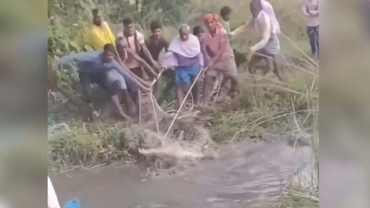 భూమిపై అత్యంత క్రూరమైన జంతువులలో మొసళ్ళు ఒకటి. మానవులు మాత్రమే కాకుండా వేటాడే జంతువులు కూడా వాటికి దూరంగా ఉండటానికి ఇష్టపడతాయి. మొసళ్ళు నీటి అడుగున ఉంటే, ఏనుగు, సింహం వంటి క్రూరమైన జంతువుతు కూడా వాటిని చూసి భయపడతాయి. మొసళ్ళు జంతువులను వేటాడే వీడియోలు తరచుగా సోషల్ మీడియాలో వైరల్ అవుతాయి. కానీ తాజాగా ఊరు ఊరంతా సమిష్టిగా మొసలిని వేటాడారు. ఇందుకు సంబంధించిన వీడియో ప్రస్తుతం ఇంటర్నెట్లో సంచలనం సృష్టిస్తోంది. ఈ దృశ్యం ఎంత భయానకంగా ఉందంటే ఎవరైనా షాక్ అవ్వాల్సిందే..!