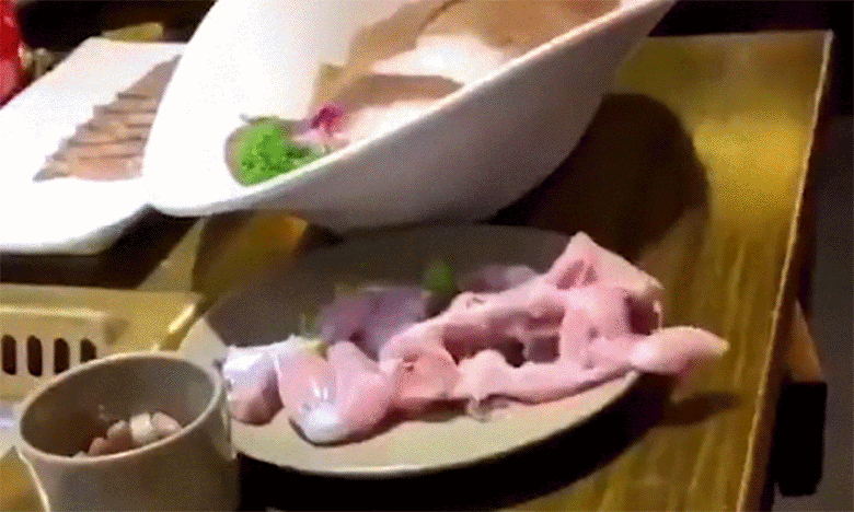 ఫ్లోరిడాలో ఈ మధ్య ఓ రెస్టారెంటుకు వెళ్లిన ఓ కస్టమర్ కి వింతయిన అనుభవం ఎదురైంది. ఈ హోటల్లోని టేబుల్ మీద ఉంచిన మాంసం ముక్కల్లో ఒకటి దానికదే జీవం ఉన్నదానిలా పాకుతూ..ప్లేటు నుంచి జారి కింద పడిపోయింది. ఇది చూసిన ఓ మహిళ భయంతో కేకలు వేయగా.. రీ ఫిలిప్స్ అనే వ్యక్తి ‘ ధైర్యంగా ‘ వీడియో తీసి ఫేస్ బుక్ లో పోస్ట్ చేశాడు. కేవలం వారం , పది రోజుల్లోనే దీనికి సుమారు నాలుగు మిలియన్ల వ్యూస్ వచ్చాయట. అయితే ఇది ఫేక్ వీడియో అని కొందరంటే..మరికొందరు.. బహుశా ఆ మాంసం ముక్క లోని నాడుల్లో ఇంకా జీవం ఉండవచ్చునని అభిప్రాయపడ్డారు. మరికొందరు.. ఈ మటన్ ముక్కకు బహుశా స్ట్రింగ్ (కొక్కెం) వంటిది ఏదైనా అంటుకుని వుండవచ్చునని , టేబుల్ స్మూత్ గా ఉండడంతో అది ఇలా జారిపోయి ఉంటుందేమోనని విశ్లేషించారు. ఏమైనా.. ప్లేటులోని మాంసం ముక్క దానికదే ‘ గింగిరాలు ‘ తిరుగుతూ మెల్లగా జారిపోవడం ఆశ్చర్యకరమని అంటున్నవాళ్ళూ ఉన్నారు.