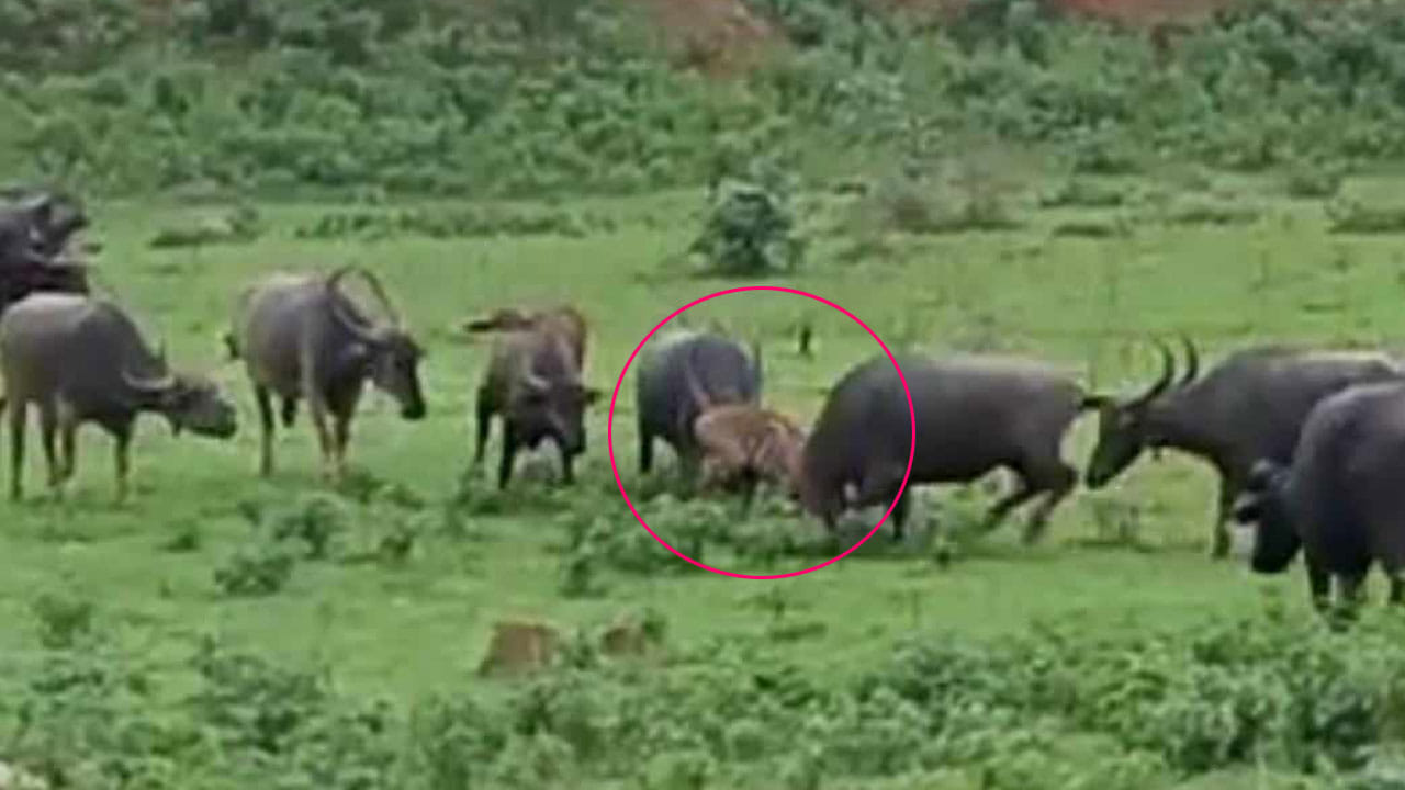 Watch Video: బర్రెల మంద ధైర్యానికి సలాం.. వేటాడబోయిన పెద్ద పులిని వెంటబడి మరీ చంపేశాయి.. వీడియో చూస్తే షాకే..