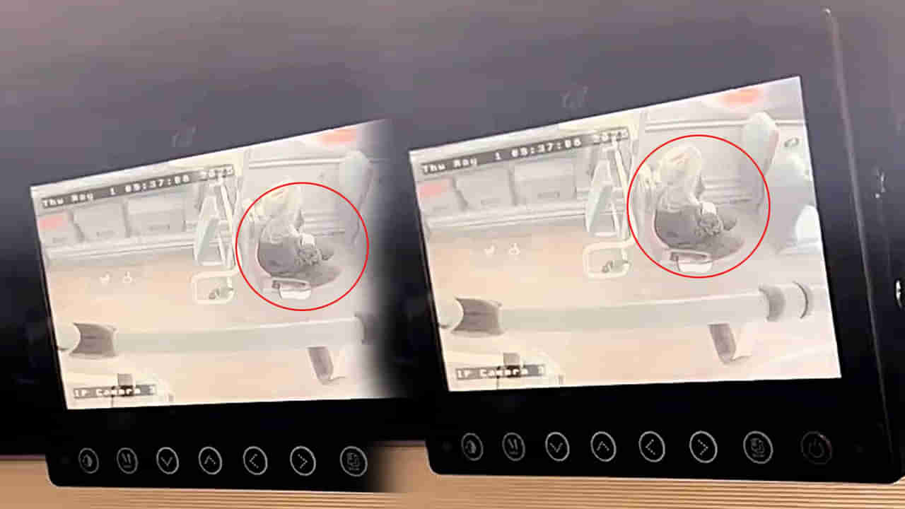 కెమెరాలో కనిపించిన ఆకారం స్పష్టంగా లేకపోయినా.. ఆ ఆకారం అచ్చం మనిషి మాదిరిగా కనిపించిందని.. రెండు చేతులు ఒడిలో పెట్టుకుని నిద్రపోతున్నట్టుగా ఉందని చెప్పుకొచ్చాడు. అలాగే తలపై ఓ టోపీ కూడా ఉన్నట్టు తెలిపాడు. దాని ముఖం మాత్రం క్లారిటీగా లేదు. ఈ వీడియో ప్రస్తుతం సోషల్ మీడియాలో తెగ వైరల్ అవుతుండగా.. నెటిజన్లు వరుసపెట్టి కామెంట్స్తో హోరెత్తిస్తున్నారు. ‘అది చాలా భయానకంగా ఉందని’ ఒకరంటే.. ‘కచ్చితంగా ఆత్మ అయ్యి ఉంటుందని’ మరొకరు కామెంట్ చేశారు. లేట్ ఎందుకు ఆ వీడియోపై మీరూ చూసేయండి.