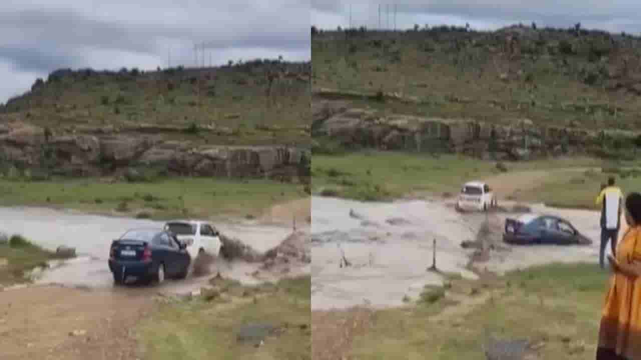 వర్షాకాలంలో (Raining) వాగులు నదులు ఉద్ధృతంగా ప్రవహిస్తుంటాయి. వానలతో ఎక్కడ చూసినా నీరే కనిపిస్తుంది. రోడ్లు జలమయమవుతాయి. చాలా చోట్ల రాకపోకలకు అంతరాయం ఏర్పడుతుంది. చాలా చోట్ల వరదల కారణంగా వంతెనలు కూడా పూర్తిగా కొట్టుకుపోతాయి. అటువంటి పరిస్థితిలో చాలా మంది తమ ప్రాణాలను అరచేతిలో పెట్టుకుని నదిని దాటుతారు. ఇలాంటి వీడియోలు నెట్టింట్లో చాలానే ఉన్నాయి. అయితే ప్రవాహంలో కొట్టుకుపోయిన కారు వీడియో ఒకటి ప్రస్తుతం సోషల్ మీడియాలో (Social Media) వైరల్ గా మారింది. ఈ క్లిప్ లో నదికి భారీగా వరద వస్తుంది. ఒడ్డున ఆగి ఉన్న రెండు కార్లు వంతెనను దాటడానికి ప్రయత్నిస్తాయి. అందులో ఒక కారు నదిని దాటేయగా.. మరో కారు బలమైన నీటి ప్రవాహం ఒత్తిడిని తట్టుకోలేక కొట్టుకుపోతుంది. ఈ ప్రమాదకర ఘటనలో కారు డ్రైవర్ తృటిలో ప్రాణాపాయం నుంచి తప్పించుకున్నాడు. అందుకే ప్రమాదకరమైన ప్రదేశాల్లో రిస్క్ తీసుకోకూడదని అలా చేస్తే తీవ్ర పరిణామాలు ఎదుర్కోవాల్సి వస్తుందని హెచ్చరిస్తున్నారు.