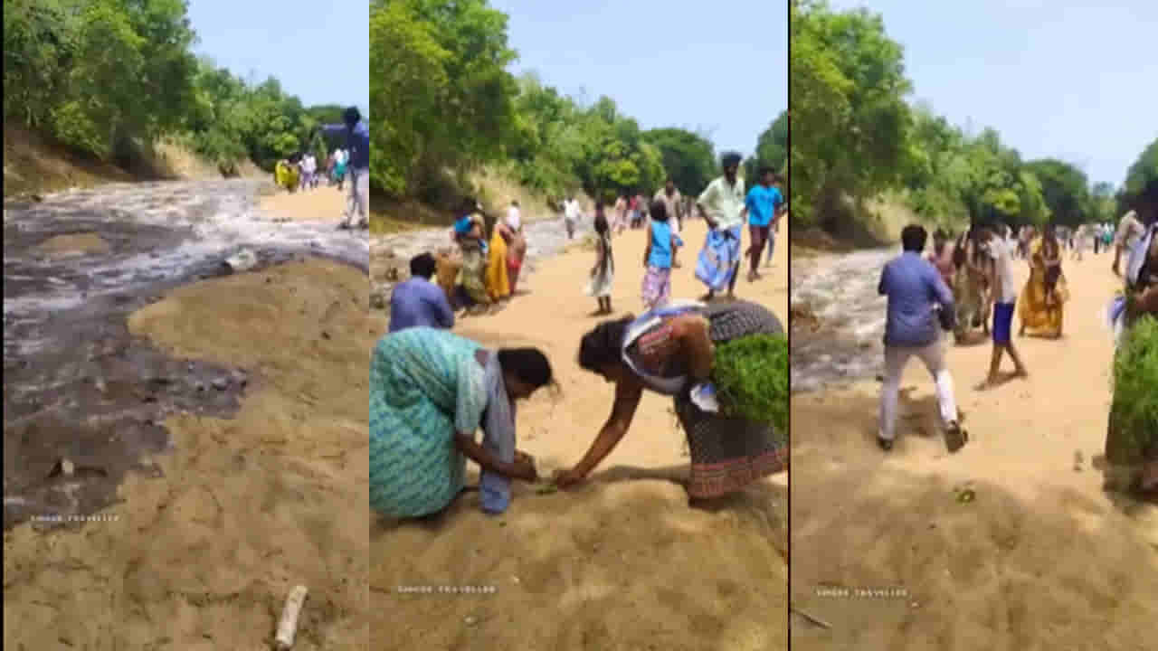 తమిళనాడులో వెలుగు చూసిన ఒక భావోద్వేగ దృశ్యం ఇప్పుడు సోషల్ మీడియాలో వైరల్ అవుతోంది. ఇది సాధారణ నీటి ప్రవాహం కాదు, ఇది కావేరి తల్లి రాక వేడుక… అక్కడి ప్రజలు పూల వర్షం కురిపించారు. చేతులెత్తి మొక్కులు తీర్చుకున్నారు. సంతోషంతో కళ్ళు తడిగా మారాయి. నదీ ప్రవాహం చూడగానే అందరి మనసులు సంతోషంతో నిండిపోయాయి. కావేరి డెల్టా ప్రాంతానికి నీటిపారుదల కోసం నీరు విడుదల చేశారు. ఈ క్రమంలోనే కావేరి నది నీరు ఎండిన భూమికి చేరుకున్నప్పుడు అక్కడి గ్రామస్తుల సంతోషం, సంబరాలు నిజంగా వెలకట్టలేనివి. కొందరు ఆ నీటిని తమ నుదిటికి అద్దుకుని ఆనందపడ్డారు. మరి కొందరు కర్పూర హారతి పట్టారు. ఇంకొందరు కన్నీళ్లతో కావేరీ మాతను తాకి నమస్కరించారు. ఈ అందమైన క్షణాన్ని IFS అధికారితో సహా చాలా మంది ఇంటర్నెట్లో పోస్ట్ చేశారు. ఇది అనేక హృదయాలను తాకుతోంది.