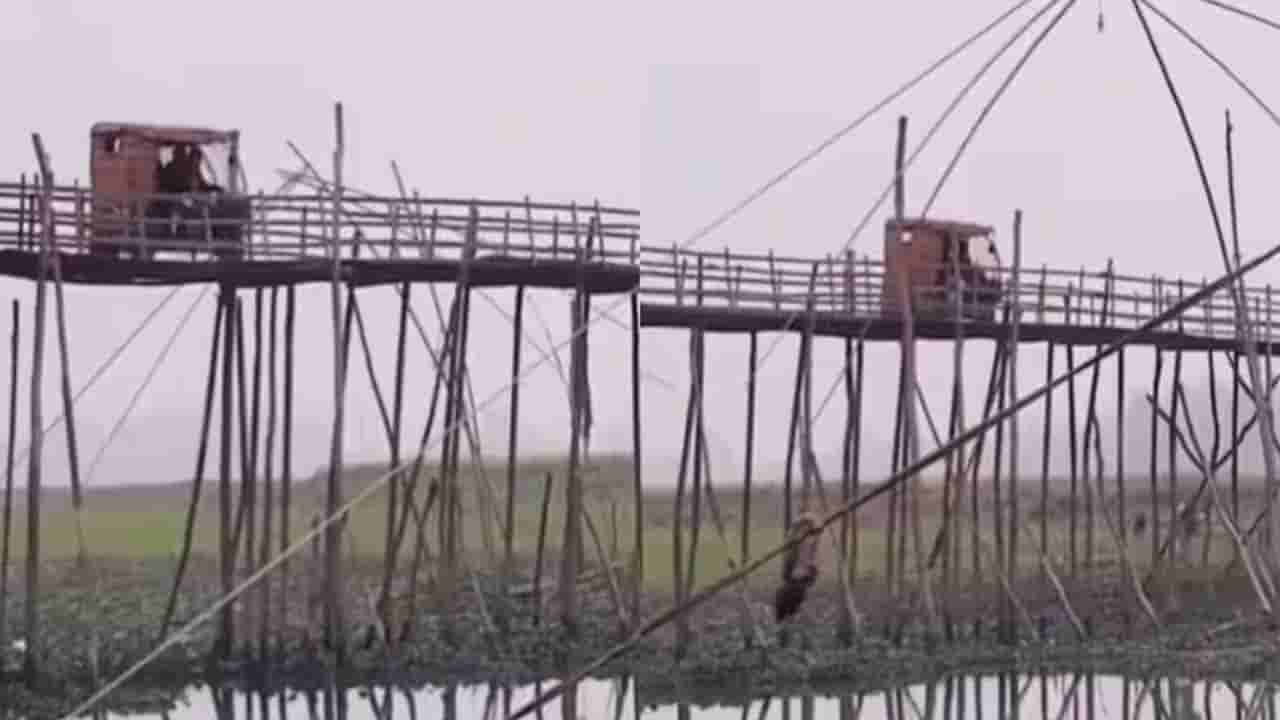 సోషల్ మీడియాలో వైరల్ అవుతున్న ఒక వీడియోలో, నదిపై వెదురు, కర్రలతో నిర్మించిన ఒక ఇరుకైన తాత్కాలిక వంతెన కనిపించింది. ఒక ఈ-ఆటో రిక్షా డ్రైవర్ ఈ వంతెనపై ఆగకుండా వేగంగా వెళ్తున్నాడు. ఈ వీడియోను @Babaxwale అనే అకౌంట్ ‘X’ అనే సోషల్ మీడియా ప్లాట్ఫామ్లో షేర్ చేశారు. ఆ వంతెన చాలా శిథిలావస్థలో ఉన్నట్లు స్పష్టంగా కనిపిస్తోంది. చెక్క, వెదురుతో కట్టిన ఈ వంతెనపై చిన్న పొరపాటు జరిగినా పెద్ద ప్రమాదం జరగొచ్చు. అయినప్పటికీ, ఆ డ్రైవర్ తన ఈ-రిక్షాతో నిర్భయంగా వంతెనను దాటడం చూసి ప్రజలు ఆశ్చర్యపోతున్నారు. ఈ వీడియో బీహార్కు చెందినదని చెబుతున్నారు.