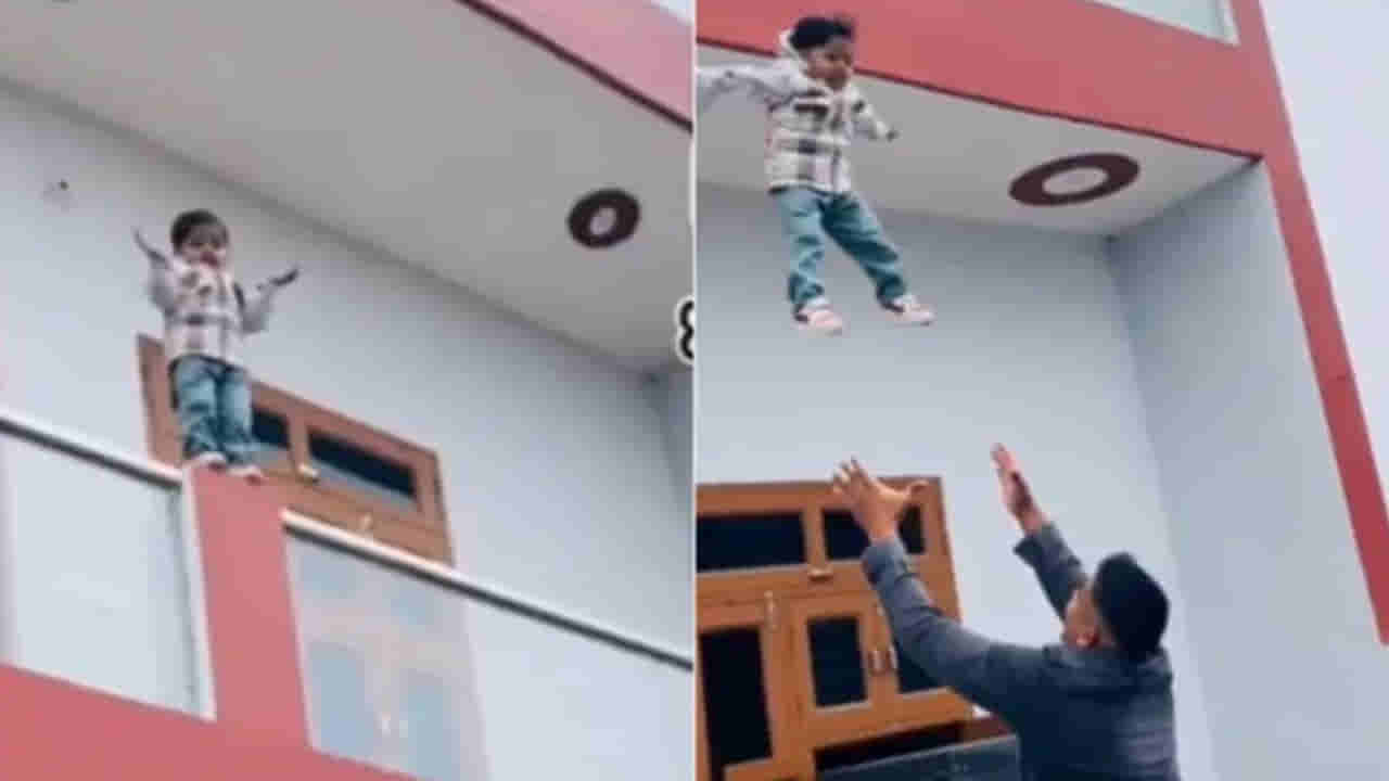 వైరల్ అవుతున్న ఈ వీడియోలో, ఒక వ్యక్తి తన కుమారుడితో కలిసి అపార్ట్మెంట్ బాల్కనీ వద్ద నిలబడి ఉన్నాడు. బహుశా ఏదో ఒక సినిమా సీన్ లేదా స్టంట్ రీక్రియేట్ చేయాలనే ఉద్దేశంతో, ఆ తండ్రి తన బిడ్డను బాల్కనీ రెయిలింగ్ అవతలి వైపు నుంచి దూకమని ప్రోత్సహించాడు. ఆ బాలుడు కూడా తండ్రి మీద నమ్మకంతో గాలిలోకి దూకాడు. అయితే, దురదృష్టవశాత్తు ఆ తండ్రి ఆ బిడ్డను సరిగ్గా పట్టుకోలేకపోయాడు. బాలుడు తండ్రి చేతుల్లోంచి జారి నేరుగా కింద పడిపోయాడు.