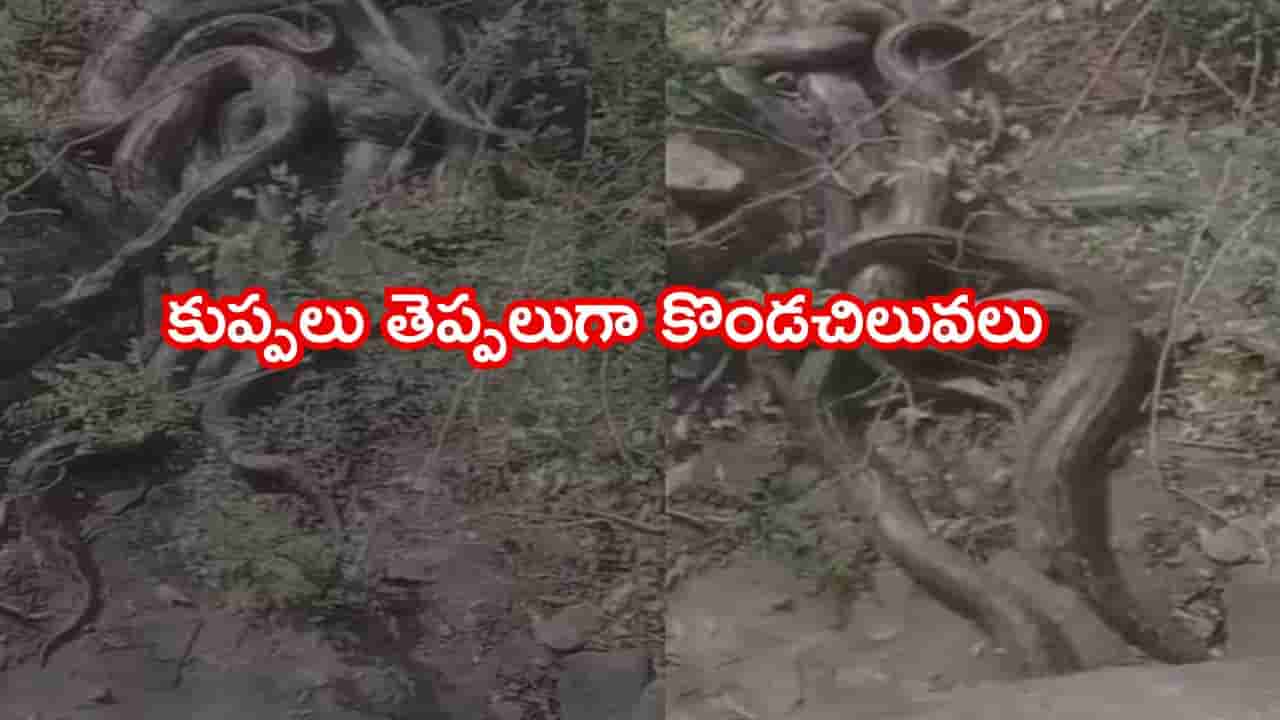 ప్రకృతిలో ఒక్కోసారి ఊహించని వింతలు కనిపిస్తుంటాయి. కానీ కొన్ని వింతలు ఆశ్చర్యంతో పాటు వెన్నులో వణుకు పుట్టిస్తాయి. హిమాచల్ ప్రదేశ్లోని కాంగ్రా జిల్లాలో సరిగ్గా ఇలాంటి ఘటనే ఒకటి వెలుగులోకి వచ్చింది. పదుల సంఖ్యలో భారీ కొండచిలువలు ఒకే చోట గుంపుగా దర్శనమివ్వడం ఇప్పుడు సంచలనంగా మారింది. కాంగ్రా ప్రాంతంలోని అటవీ సరిహద్దు గ్రామాల సమీపంలో స్థానికులు వెళ్తుండగా, ఒక పొదలో ఏదో కదులుతున్నట్లు గమనించారు. దగ్గరకు వెళ్లి చూడగా, అక్కడ ఒకదానిపై ఒకటి పడి ఉన్న భారీ కొండచిలువలను చూసి వారు షాక్ తిన్నారు.. ఇవి సాధారణ పాములు కావు, ఒక్కొక్కటి దాదాపు 10 నుండి 15 అడుగుల పొడవు ఉన్న కొండచిలువలు. ఇవన్నీ ఒకదానికొకటి పెనవేసుకుని ఒక పెద్ద ముద్దలా (Cluster) పడి ఉన్నాయి.