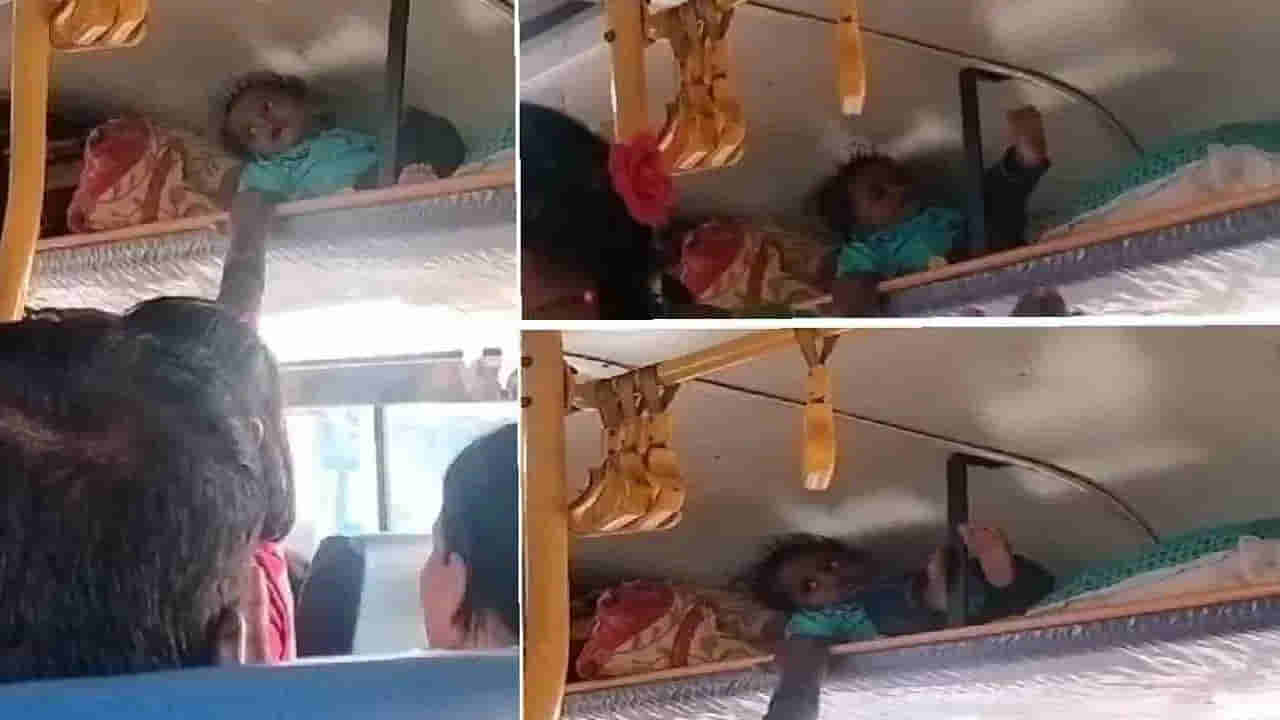 దీంతో ఒక స్త్రీ తన బిడ్డతో బస్సు ఎక్కింది.. సీటు దొరకక పోవడంతో నిలబడిన ఆ మహిళ బిడ్డతో ప్రయాణించడం కష్టంగా ఉందని భావించినట్లు ఉంది.. లగేజీని పెట్టే క్యారియర్లో తన బాబుని పడుకోబెట్టింది. ప్రయాణీకులు కూడా మహిళ ఆలోచనకు షాక్ తిన్నారు. ఓ వ్యక్తి తన మొబైల్లో వీడియో తీసి సోషల్ మీడియాలో షేర్ చేశాడు. ప్రస్తుతం లగేజీ క్యారియర్లో చిన్నారి నిద్రిస్తున్న వీడియో సోషల్ మీడియాలో వైరల్గా మారింది.