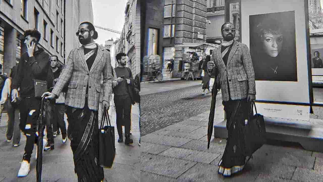 ఆడవాళ్లు ధరించే సంప్రదాయపు చీరకట్టును మగవాళ్లు ధరిస్తే ఎలా ఉంటుంది.. వినడానికి కాస్త విచిత్రంగానే ఉన్నా.. ఇప్పుడు ఇదే ఫ్యాషన్గా మారిపోయింది. హ్యారీ స్టైల్స్, రణవీర్ సింగ్, కేపాప్ బ్యాండ్ వంటి స్టార్స్ ఈ ఫ్యాషన్ కోసం తమ వంతు ప్రయత్నం చేశారు. కానీ అంతగా సక్సెస్ కాలేకపోయారు.. ఆడవాళ్ల చీరకట్టు, బొట్టును మగవాళ్లు ధరించే ఫ్యాషన్ను ఆండ్రోజినస్ ఫ్యాషన్ అంటారు. ఈ ఫాష్యన్ అనుకరించేలా ఇంటర్నెట్లో ఓ విప్లవాన్ని స్టార్ట్ చేశాడు కోల్కత్తాకు చెందిన పుష్పక్ సేన్. ఇతను ఎరుపు రంగు చీర, బొట్టు .. నల్ల కళ్ల జోడు ధరించి ఒక గొడుగు చేత పట్టుకుని ఫ్యాషన్ హబ్లలో ఒకటైన మిలన్ వీధుల్లో ఫోటోషూట్స్ నిర్వహిస్తూ అందరి దృష్టిని ఆకర్షిస్తున్నాడు. ఇతను ఇటలీలోని ఫ్లోరెన్స్ ఫ్యాషన్ మార్కెటింగ్ అండ్ కమ్యూనికేషన్స్ విద్యార్థి. తాను చీర కట్టులో ఉన్న ఫోటోలను తన ఇన్స్టాలో షేర్ చేస్తూ.. చీరలో మనిషిగా ఉండడం నన్ను ఎక్కడికీ తీసుకెళ్లదు. ఎవరు చెప్పలేదు.. ప్రపంచంలోని ప్రధాన ఫ్యాషన్ రాజధానులలో ఒకటైన వీధుల్లో ఎవరు నడుస్తారో ఊహించండి అంటూ క్యాప్షన్ ఇచ్చాడు. ప్రస్తుతం పుష్పక్ సేన్ ఫోటోలు నెట్టింట్లో తెగ వైరల్ అవుతుంది. పుష్పక్ ఫోటోలకు నెటిజన్స్ అట్రాక్ట్ అవుతున్నారు.