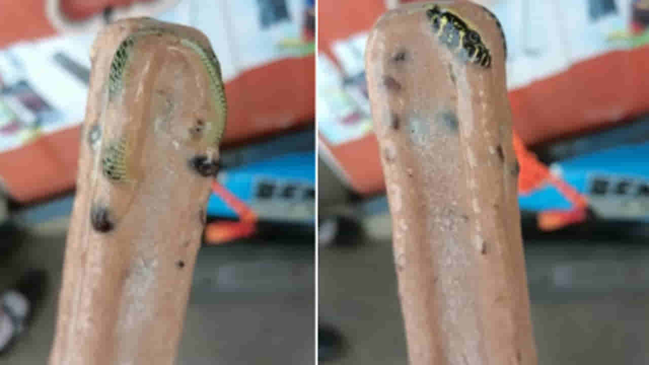 ముయాంగ్ రాట్చబురిలోని పాక్ థోకు చెందిన రేబాన్ నక్లెంగ్బూన్ అనే వ్యక్తి ఒక స్ట్రీట్ వెండర్ నుంచి ఐస్ బార్ కొన్నాడు. దాని కవర్ తీసేసి.. తినబోతుండగా కనిపించింది చూసి షాకయ్యాడు. ఎందుకంటే ఆ ఐస్ బార్పై నలుపు, పసుపు రంగులో ఉన్న పాము తల బయటకు కనిపించింది. పూర్తిగా పరిశీలించగా ప్రమాదకర చిన్నపాటి పాము అక్కడ ఉంది.