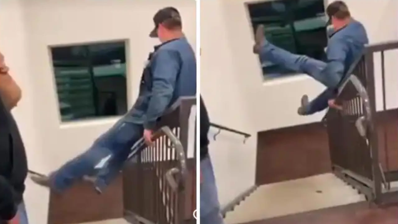 అనుకున్నట్లే రేలింగ్పై కూర్చొని జారేందుకు సిద్ధమయ్యాడు. అయితే కొంత దూరం బాగానే వెళ్లాడు. కానీ ఒక్కసారిగా అదుపు తప్పింది. రేలింగ్ నుంచి జారుతూ ఓవైపు జారిపోయాడు. దీంతో అదుపు తప్పు రేలింగ్కు అవతలి వైపు పడిపోయాడు. వీడియో గమనిస్తే ఆ మెట్లు సెకండ్ ఫ్లోర్పైనే ఉన్నట్లు కనిస్తోంది. నిజానికి రేలింగ్పై అంత ఎత్తులో నుంచి పడిపోతే తీవ్రంగా గాయాలు కావాలి. కానీ ఎక్కడో అదృష్టం ఉండడంతో బతుకు జీవుడా అంటూ బచాయించాడు.