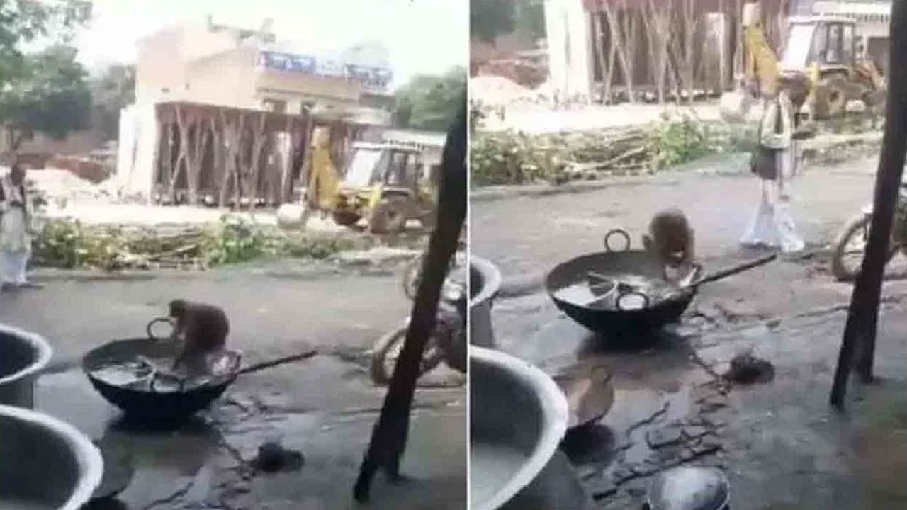 కోతులు చేసే పనులు ఎప్పుడు నవ్వులు పూయిస్తుంటాయి. అలాగే కొన్ని సందర్బాల్లో ఆశ్చర్యంగానూ ఉంటాయి. జనాలు ఉన్నచోటుకు వచ్చి కోతులు అల్లరి చేష్టలు చేస్తుంటాయి. అలాగే మనుషుల మాదిరిగానే పనులు చేయడం.. సహాయం చేస్తుంటాయి. ఇటీవల కాలంలో సోషల్ మీడియాలో కోతులకు సంబంధించిన ఫన్నీ వీడియోలు నెట్టింట్లో తెగ హల్చల్ చేస్తున్నాయి. అందులో కొన్ని ఫన్నీగా ఉండగా.. మరికొన్ని ఆశ్చర్యంగా ఉంటాయి. తాజాగా ఓ కోతి హోటల్ ముందు కడగడానికి పెట్టిన పాత్రలలో ఓ ఆటాడుకుంది. ఇందుకు సంబంధించిన వీడియో నెట్టింట్లో తెగ వైరల్ అవుతుంది.