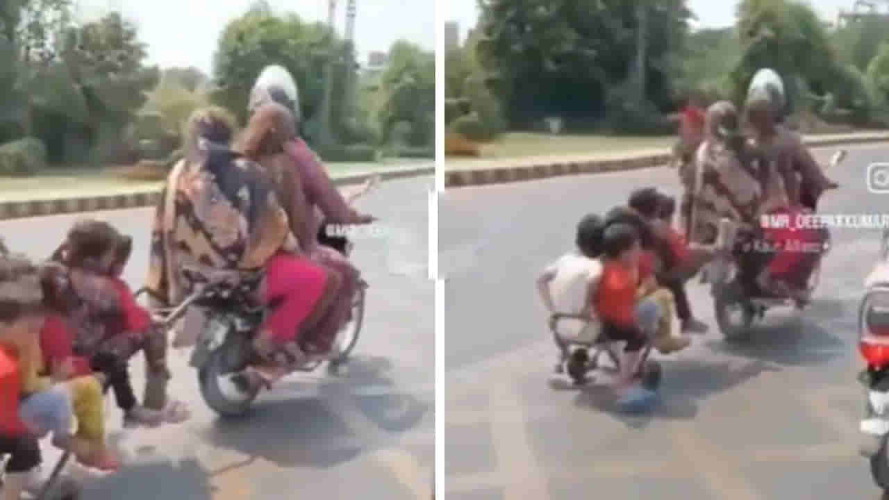 వైరల్ వీడియోలో ఒక వ్యక్తి రిక్షాలో కూర్చుని రోడ్డుపై కొన్ని అద్భుతమైన దృశ్యాలను తన కెమెరాలో బంధించడం కనిపిస్తుంది. ఆ మరు క్షణంలో మనం అతని పక్కనే ఒక ప్రత్యేకమైన బైక్ వెళ్లటం కనిపిస్తుంది. ఈ బైక్ ప్రత్యేకమైనది ఎందుకంటే..ఆ బైక్లో ఇద్దరు లేదా ముగ్గురు వ్యక్తులు కాదు, డజనుకు పైగా ఉన్నారు. వీడియోలో, బైక్ రైడర్ అతని వెనుక ఇద్దరు మహిళలు, వారి వెనుక ఒక చిన్న కారు చూడవచ్చు. అందులో కనీసం అర డజను మంది పిల్లలు కూర్చుని ఉన్నారు.. ఆ వ్యక్తి ఈ దేశీ జుగాడ్ ఇప్పుడు అందరి దృష్టిని ఆకర్షించింది.