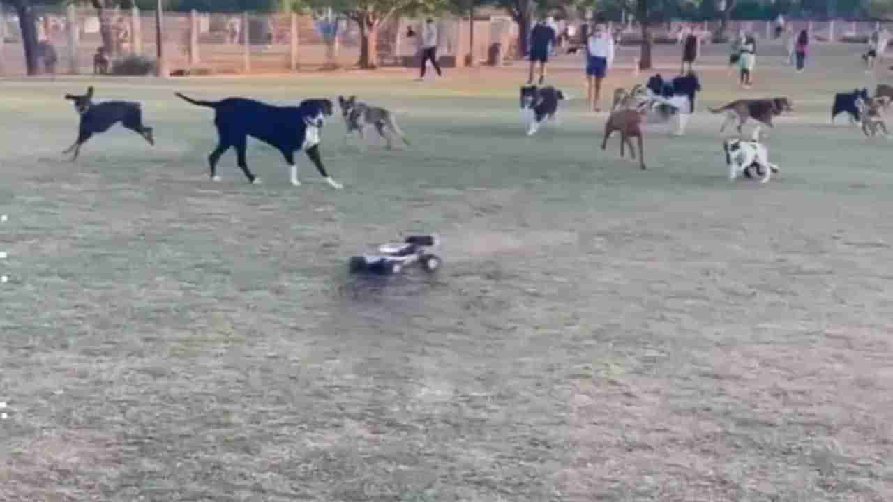 మనుషుల మాదిరిగానే.. జంతువులు కూడా కొత్త వస్తువులను చూడటానికి.. వాటిని అనూసరించడానికి ఆసక్తి చూపిస్తాయి. తాజాగా కొన్ని కుక్క పిల్లలకు సంబంధించిన వీడియో ఇప్పుడు నవ్వులు పూయిస్తుంది. ఓ రిమోట్ కారు వెనకాల కుక్కలు పరుగెడుతున్న వీడియో ఇంటర్నెట్లో హల్చల్ చేస్తోంది. హ్యూమర్ అండ్ ఎనిమల్స్ అనే ట్విట్టర్ యూజర్ ఖాతాలో ఈ వీడియోను షేర్ చేశారు. అందులో ఓ పార్క్లో రిమోట్ కారు చుట్టూ కొన్ని కుక్కలు పరుగెడుతూ ఉన్నాయి. ఆ రిమోట్ కారును అందుకోవడానికి అవి శతవిధాలుగా ప్రయత్నిస్తున్నాయి. అందులో దాదాపు 20 కుక్కలు ఆ కారును పట్టుకోవడానికి దాని వెంట పడుతున్నాయి. ఈ ఫన్నీ వీడియోను చూసిన నెటిజన్స్ విభిన్న రకాలుగా కామెంట్స్ చేస్తున్నారు. కారు బ్యాటరీ పూర్తయ్యే వరకు వాటిని ఆడించాలి అంటూ ఓ నెటిజన్ కామెంట్ చేయగా.. కుక్కలు.. రిమోట్ కారు పార్కుకు వస్తే ఇలాగే ఉంటుందని ఫన్నీగా కామెంట్స్ చేస్తున్నారు. ప్రస్తుతం ఈ వీడియో 58.4కే లైక్స్ అందుకుంది. మరి ఆ ఫన్నీ వీడియోను మీరు చూసేయ్యండి.