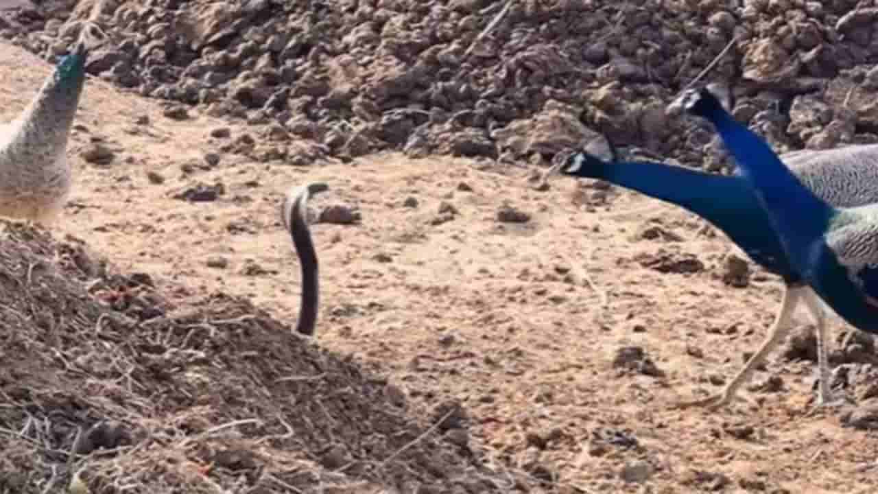 సోషల్ మీడియాలో తరచూ అనేక వీడియోలు, ఫోటోలు వైరల్ అవుతూ ఉంటాయి. అందులో కొన్ని జనాలను ఆశ్చర్యానికి గురిచేస్తూ ఉంటాయి. తాజాగా అలాంటి వీడియో ఒకటి ట్రెండింగ్లోకి వచ్చింది. ఈ వైరల్ వీడియోలో రెండు నెమళ్లు, ఒక ఆడ నెమలి కలిసి నడుస్తుండగా వాటికి సడెన్గా ఓ నాగుపాము అడ్డొస్తుంది. దీంతో ఆ నెమళ్లు ఒక్కసారిగా ఆగిపోతాయి. అది చూసిన పాము పడగ విప్పి వాటి ముందు నిల్చున్న దృశ్యాన్ని మనం చూడవచ్చు. అయితే నెమళ్లు మాత్రం దానికి భయపడకుండా దాని దగ్గరకు వెళ్లాయి. మళ్లీ ఆ పామును ఏమనకుండా వెనక్కి వచ్చాయి. ఇది గమనించిన కొందరు ఈ వీడియోను తీసి సోషల్ మీడియాలో అప్లోడ్ చేశారు. దీంతో ఈ వీడియో ప్రస్తుతం ట్రెండింగ్లోకి వచ్చింది.