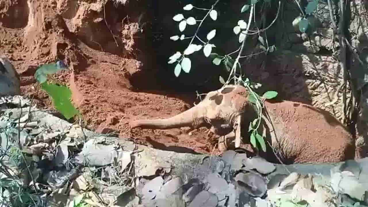 #WATCH | An elephant calf shows gratitude after it was rescued from a mud pit in the forest area by the personnel of the Forest Department in Gharghoda, Raigarh