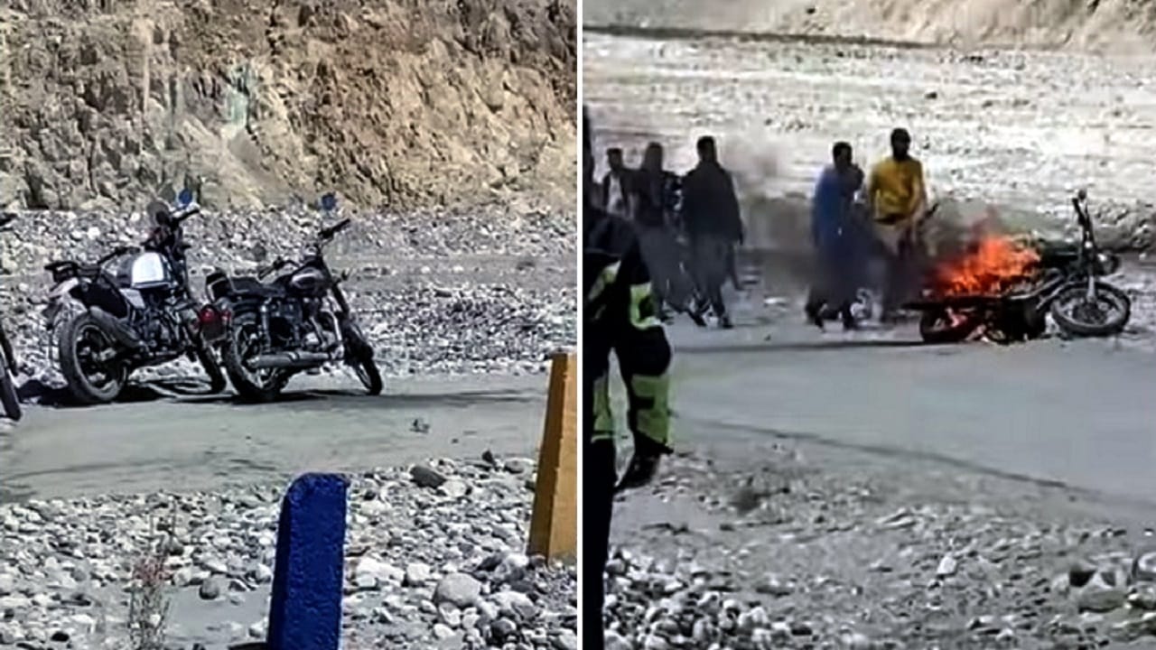 ఇటీవల కాలంలో ఏదైనా ఒక బైక్ దగ్ధమైంది అని అంటే అది ఎలక్ట్రిక్ వాహనమే అని సాధారణంగా మనం అనుకుంటాం. ఎందుకంటే తరచూ ఏదో సాంకేతికత కారణంతో ఎలక్ట్రిక్ ద్విచక్ర వాహనాల బ్యాటరీలు వాటంతట అవే పేలిపోయి కాలిపోతున్నాయి. అయితే సంప్రదాయ పెట్రోల్ ద్విచక్ర వాహనాలు సాధారణంగా దగ్ధమవడానికి చాన్స్ ఉండదు. ఇంజిన్ లోపలే కంబషన్ జరుగుతున్నా.. ఎప్పుడో హాట్ సమ్మర్ లో ఏదో ఒకటి అర ఇటువంటి సంఘటనలు చోటుచేసుకుంటుంటాయి. కానీ లడక్ లాంటి చలి ప్రదేశంలో .. అది అంతర్జాతీయ స్థాయి ప్రమాణాలతో ఉండే రాయల్ ఎన్ ఫీల్డ్ బైక్ దానంతటే అదే దగ్ధమైన ఘటన ఇటీవల అందరినీ షాక్ గురిచేసింది. ఈ ఘటనకు సంబంధించిన వీడియో సోషల్ మీడియాలో వైరల్ అయ్యింది.