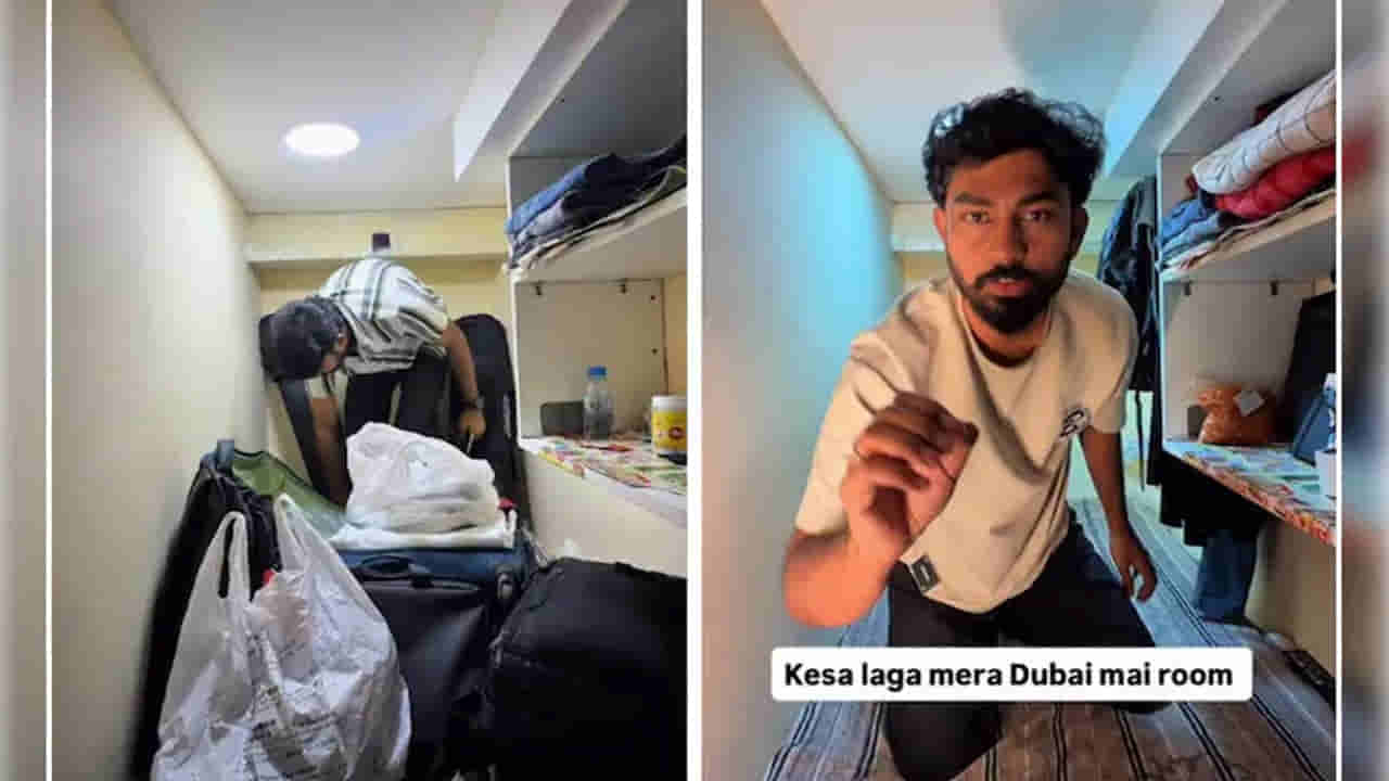 దుబాయ్ అనగానే మనకు ఆకాశాన్నంటే భవనాలు, ధనవంతుల జీవనశైలి గుర్తొస్తుంది. కానీ, అక్కడ ఉద్యోగాల కోసం వెళ్ళే సామాన్య ప్రజల పరిస్థితి ఎలా ఉంటుందో ఒక యువకుడు తన వీడియో ద్వారా ప్రపంచానికి చూపించాడు. నెలకు వేల రూపాయలు ఖర్చు చేసినా, కనీసం ప్రశాంతంగా పడుకోవడానికి సరైన స్థలం దొరకని దుస్థితి అక్కడ ఉందని ఈ వీడియో వెల్లడిస్తోంది. వైరల్ వీడియోలో ఒక కంటెంట్ క్రియేటర్ దుబాయ్లో తాను అద్దెకు ఉంటున్న గదిని చూపిస్తూ వీడియోను పోస్ట్ చేశాడు. ఆ గది కోసం అతను నెలకు 25,000 భారతీయ రూపాయలు చెల్లిస్తున్నాడు. అయితే ఆ గదిని చూస్తే ఎవరైనా అవాక్కవ్వాల్సిందే.