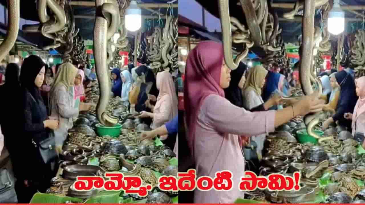 ప్రపంచ వ్యాప్తంగా అనేక రకాల మార్కెట్లు ఉన్నాయి. కొన్నింటిలో పండ్ల మార్కెట్లు, మరికొన్ని కూరగాయలు అమ్ముతారు. అయితే అనేక మార్కెట్లు మాంసం, చేపలకు ప్రసిద్ధి. మాంసాహార మార్కెట్లు సాధారణంగా చికెన్, మటన్, చేపలు, రొయ్యలను అమ్ముతుండగా, విదేశాలలో చికెన్, చేపలను మాత్రమే కాకుండా కప్పలు, పాములను కూడా అమ్మే అనేక మార్కెట్లు ఉన్నాయి. అవును, ఇది పూర్తిగా నిజం..! ఒక పాము మార్కెట్ కూడా ఉంది. అటువంటి అసాధారణ మార్కెట్ వీడియో ప్రస్తుతం సోషల్ మీడియాలో వైరల్ అవుతోంది. అక్కడ పాములు, కప్పలు, తాబేళ్లు అమ్మకానికి పెడతారు. మీరు బహుశా ఇలాంటి మార్కెట్ను ఎప్పుడూ చూసి ఉండకపోవచ్చు..!