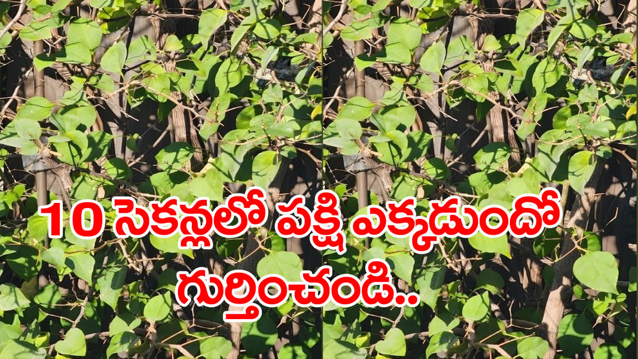 ఆప్టికల్ ఇల్యూషన్, బ్రెయిన్ టీజర్లు మనల్ని గందరగోళానికి గురి చేస్తాయి. కానీ మీరు ఎంత తెలివైనవారో పరీక్షించుకోవడానికి ఇవి భలేగా ఉపయోగపడతాయి. అందుకే చాలా మంది ఆప్టికల్ ఇల్యూషన్లు సాల్వ్ చేయడానికి ఆసక్తి చూపుతారు. ఇలాంటి ఫొటోల్లో కొన్ని గమ్మత్తైనవిగా ఉంటాయి. ఎంతకూ పరిష్కరించలేమనే సవాల్ విసురుతూ ఉంటాయి. అలాంటి ఓ ఆప్టికల్ భ్రమ చిత్రం ప్రస్తుతం వైరల్ అవుతుంది. ఇక్కడున్న ఫొటోలో పచ్చని కొమ్మల మధ్యలో ఓ హమ్మింగ్బర్డ్ దాక్కుంది. పది సెకన్లలో మీరు ఈ పక్షిని కనుగొంటే మీది సూక్ష్మదృష్టి అని చెప్పవచ్చు. సోషల్ మీడియాలో వైరల్ అవుతున్న ఈ ఫొటోలో పచ్చని చెట్టు కొమ్మలు గుబురుగా ఉండటం మీరు చూడవచ్చు. పూర్తిగా ఆకులు, కొమ్మలతో కప్పబడి ఉంది. అయితే ఈ చెట్టుపై ఒక హమ్మింగ్ బర్డ్ కూడా ఉంది. ఈ పక్షిని 10 సెకన్లలో గుర్తించాలి. కనిపించిందా..?