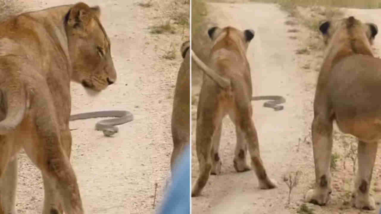 Viral Video: అడవీకి రాజు సింహం కావచ్చు.. కానీ దాని బలానికి కూడా ఒక పరిమితి ఉంటుంది. సింహం ఓడించలేని జీవులతో ఎప్పుడూ పోరాడదు. ప్రస్తుతం ఇంటర్నెట్లో వైరల్ అవుతున్న ఒక షాకింగ్ వీడియో దీనికి గొప్ప ఉదాహరణ. ఈ వీడియోలో, రెండు సింహాలు, ఒక నాగుపాము ముఖాముఖిగా వస్తాయి. ఆశ్చర్యకరమైన విషయం ఏమిటంటే, ప్రతి జంతువుతోనూ పోరాడాలని భావించే అడవి రాజు.. పామును చూసి వెంటనే వెనక్కి వెళ్లి పోతుండడం చూస్తే ఆశ్చర్యపోతారు.