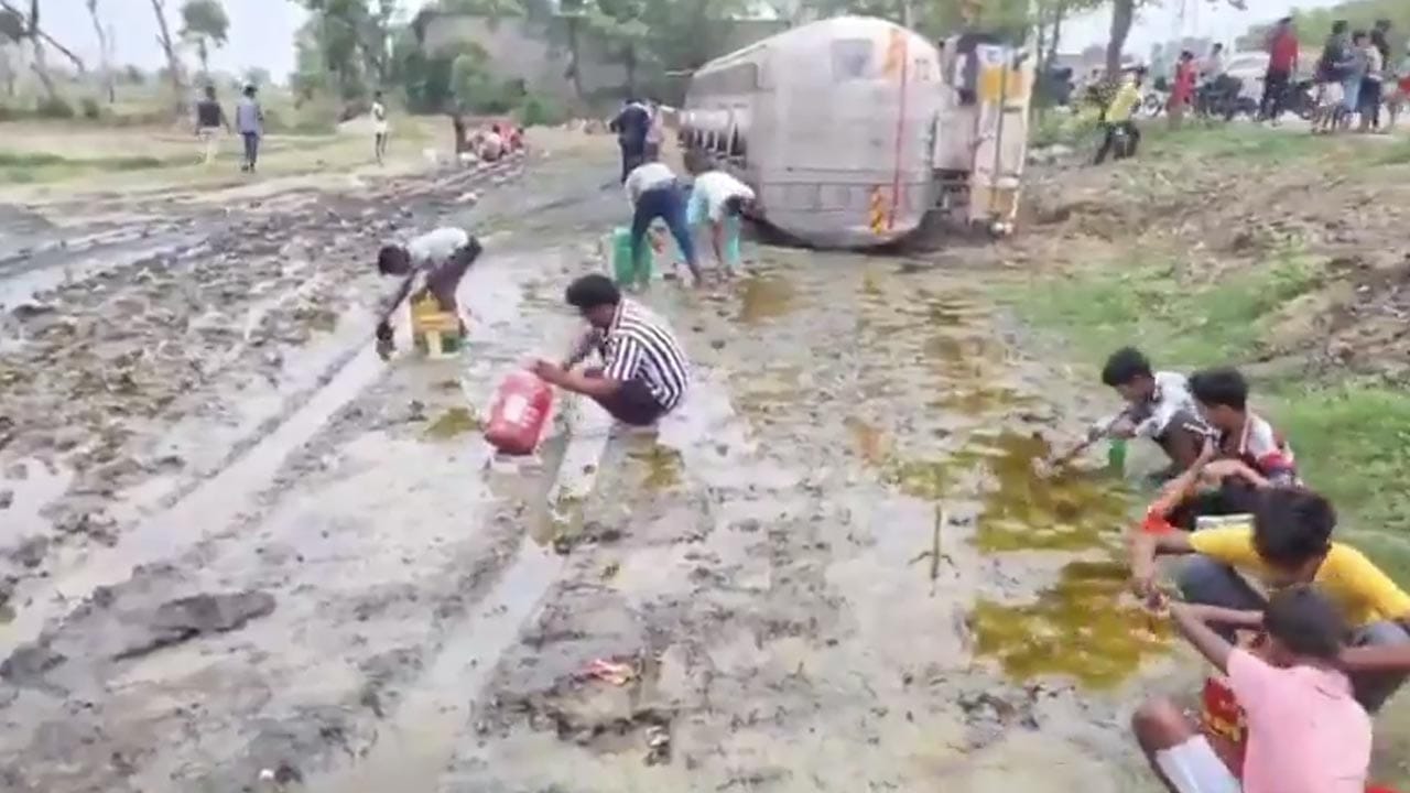 అయితే.. బోల్తా పడిన ట్యాంకర్ సమీపంలో బురదమయమైన రహదారిపై గ్రామస్తులు తాము తెచ్చుకున్న బిందెలు, డబ్బాల్లో నూనెను నింపుతున్న వీడియోలు ప్రస్తుతం సోషల్ మీడియాలో వైరల్ అవుతోంది.