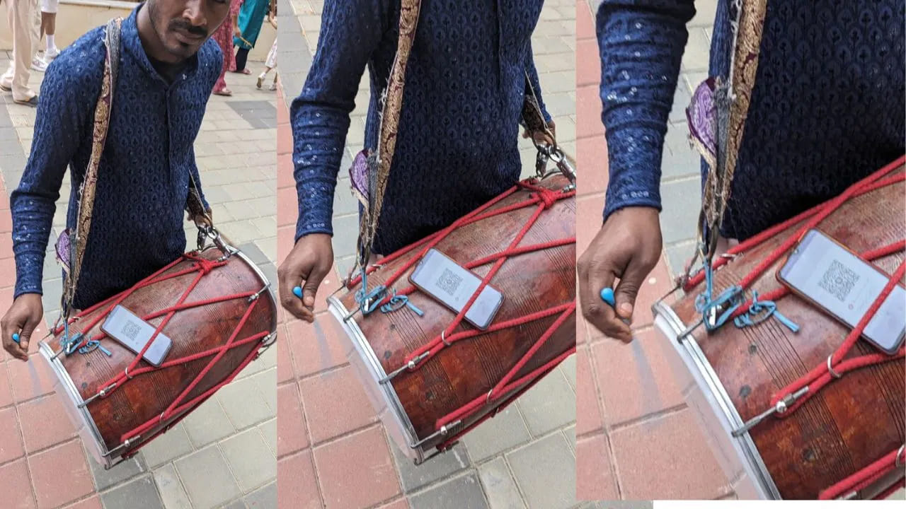 వైరల్ అవుతున్న చిత్రంలో డ్రమ్మర్ తన డ్రమ్ మీద తన మొబైల్లో క్యూఆర్ కోడ్ ని ఓపెన్ చేసుకుని పెట్టుకున్నాడు. ఎవరైనా వేడుక సందర్భంగా గిఫ్ట్ ఇవ్వాలనుకుంటే డ్రమ్పై అమర్చిన ఉన్న క్యూ ఆర్ కోడ్ ని స్కాన్ చేసి ఇవ్వచ్చు.